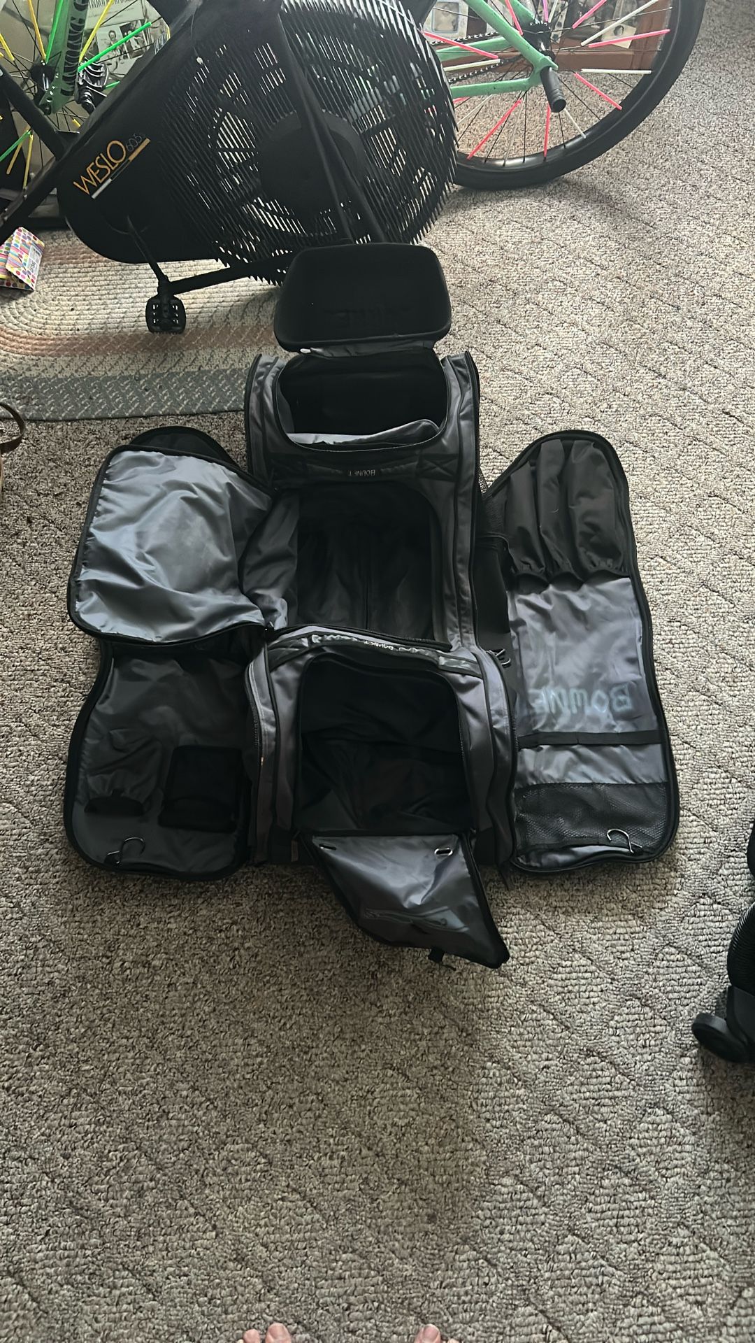 Barely used. a lot of space. all black. Amazing for catchers gear. Holds all of your bats and accessories.