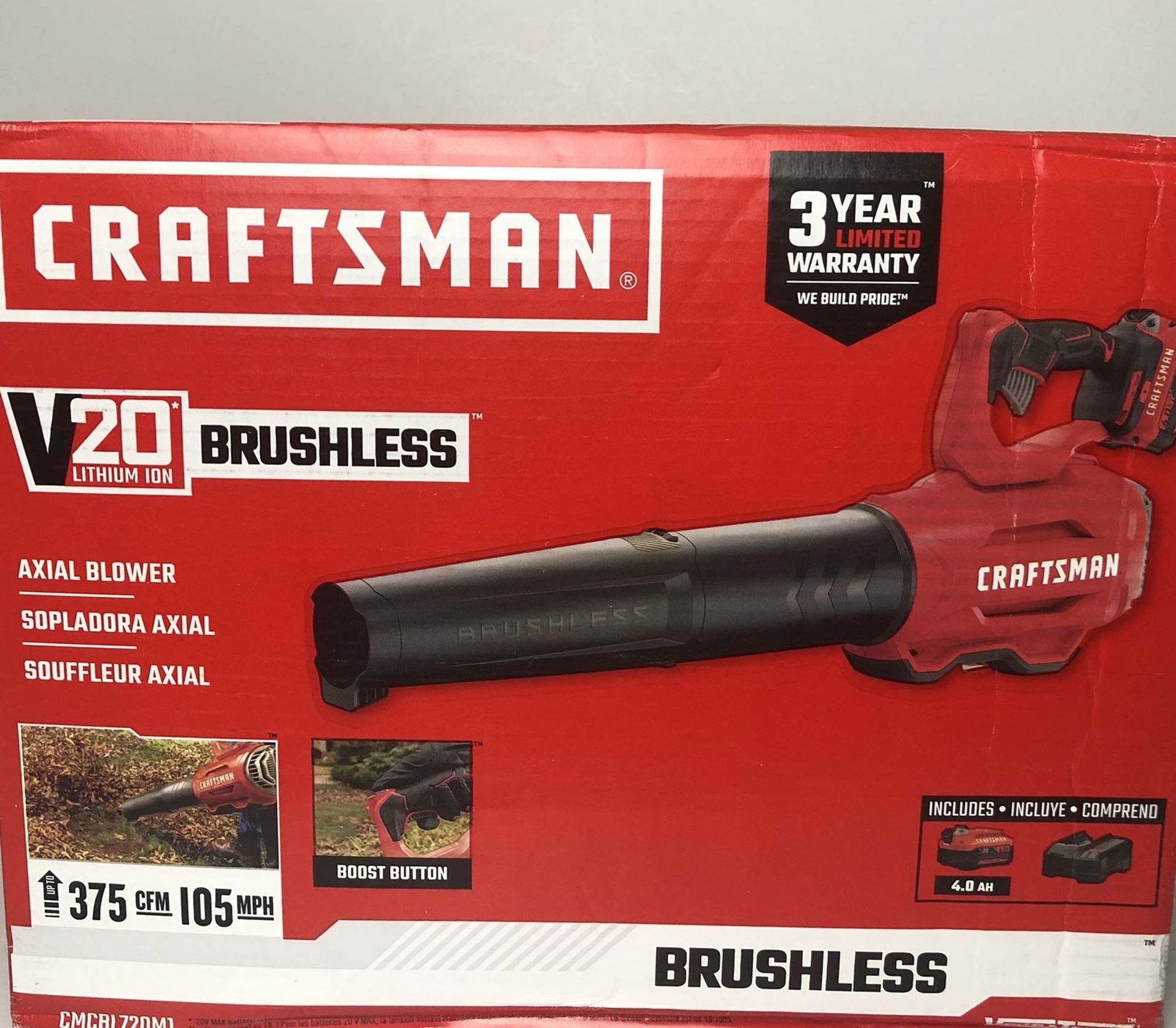 This item is brand new just as shown in the photos. Makes a great gift ! Craftsman V20 Brushless Cordless blower.