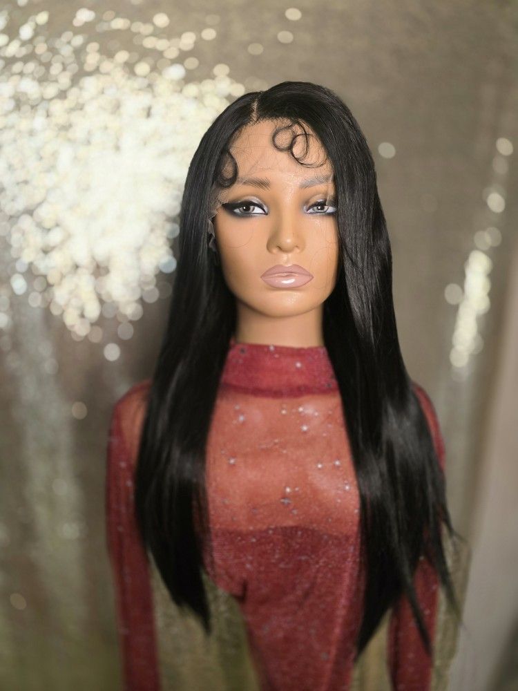 22" HD Lace Front Synthetic Hair Wig Straight Black Baby Hair