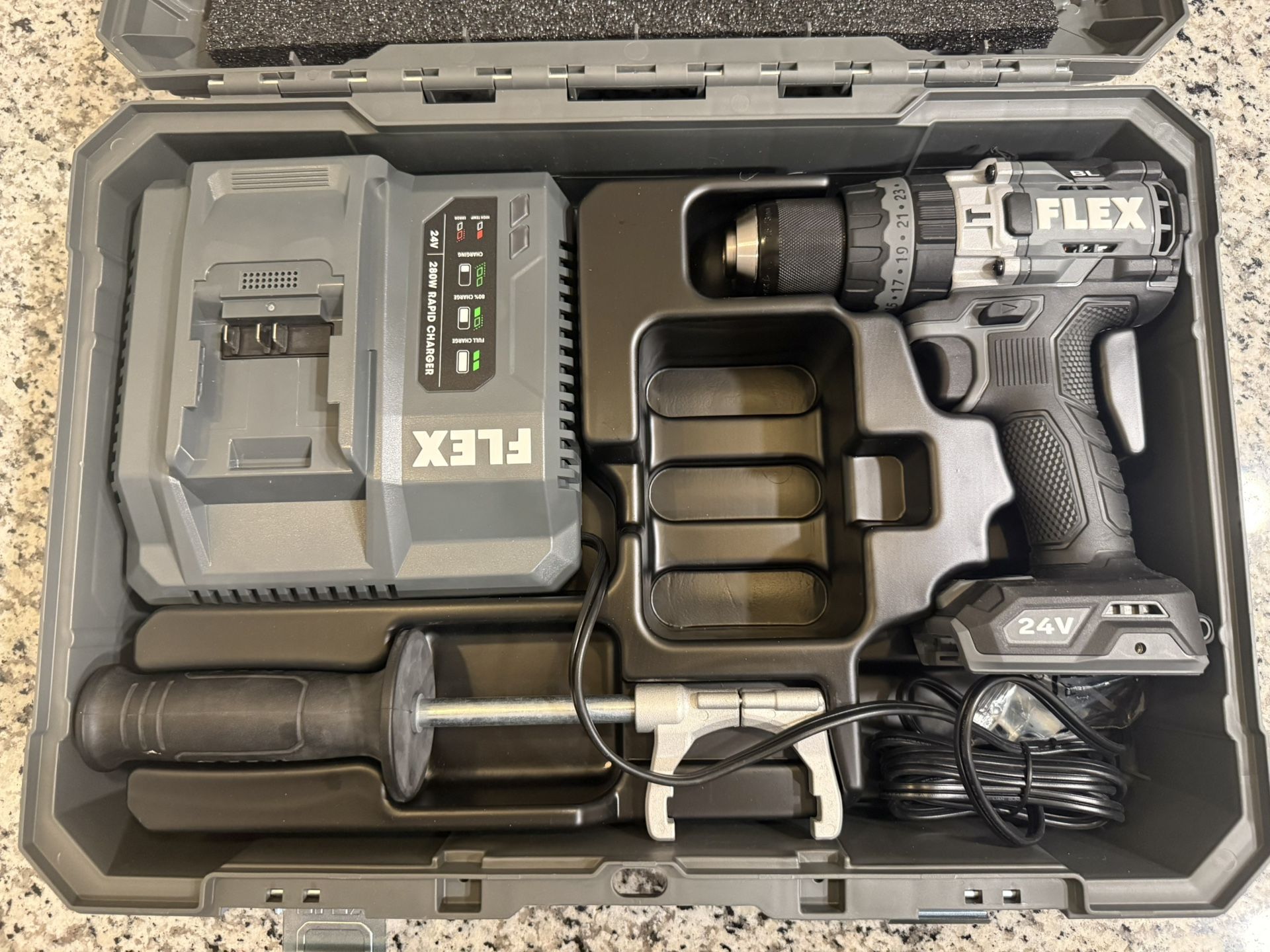 Up for Sale is my Flex 24V Hammer Drill with Turbo mode. Everything is brand new and never been used Included with tool is •Hard case •Rapid charger • side handle *Battery not included