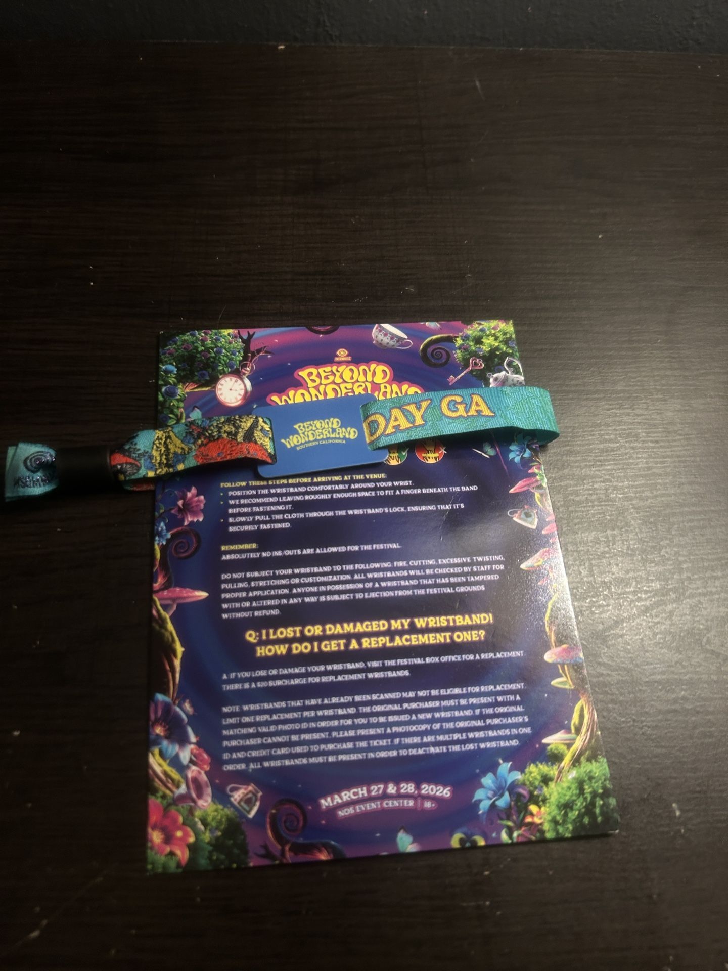1 beyond wonderland wrist band Firm on price obo