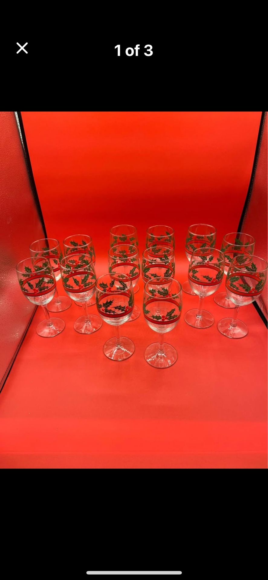 Vintage Libbey Christmas Holly And Berry Wine Glasses