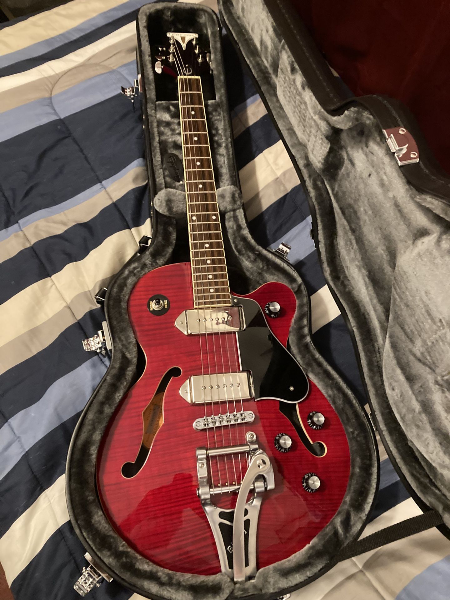 2016 wine red. Mint condition. Perfect set neck. Low action. Plays excellent. I’ve had several of these over the years. This is the best one by far. Case is like new. The reverb pics are of the guitar as well. Added pickguard. Took screenshots when I purchased it. If you want a good instrument. This is it. Thanks for looking.