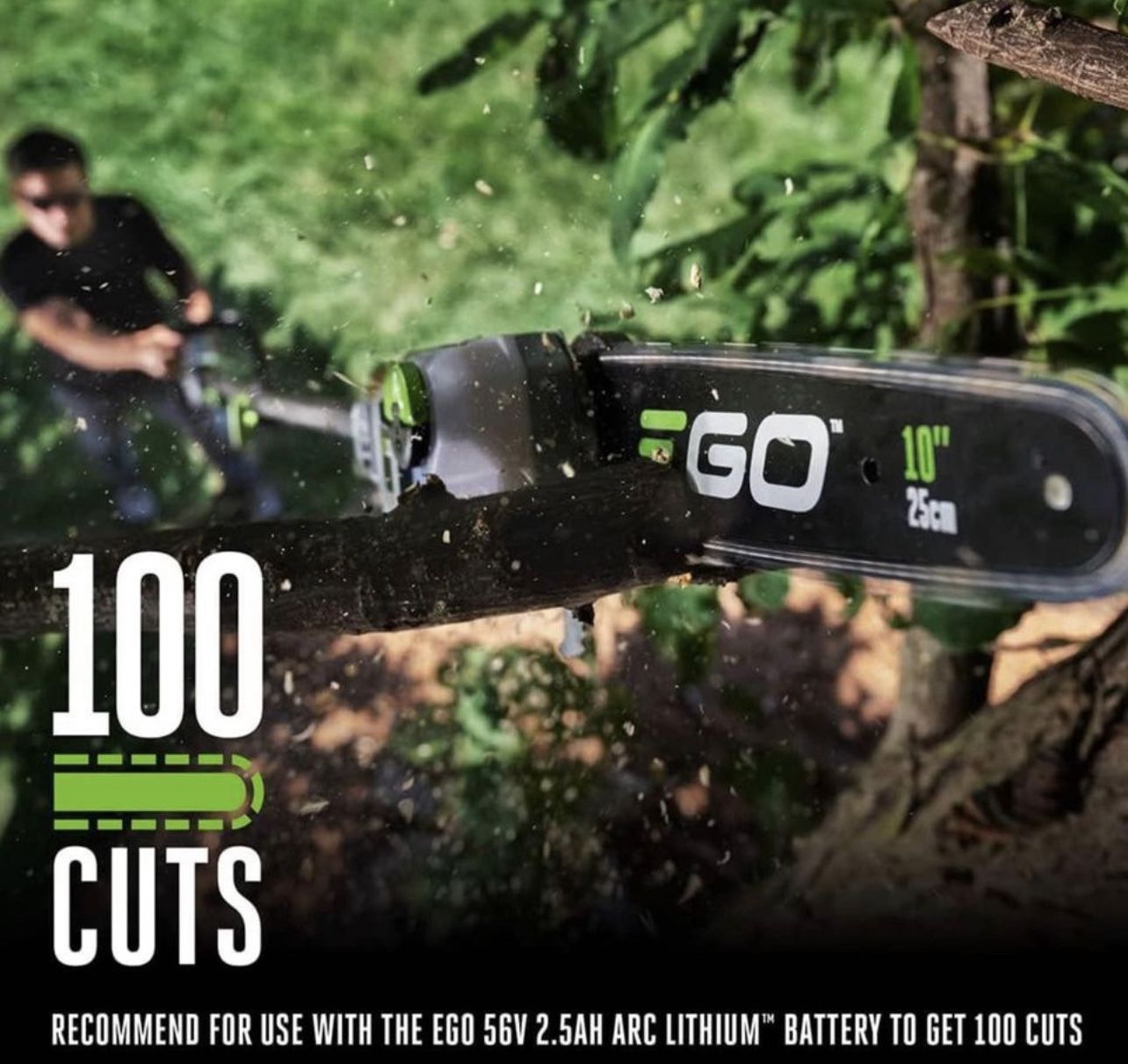 Brand EGO Power+ Color Black Blade Material Carbon,Fiber Surface Recommendation Wood Power Source Battery Powered About this item Telescopic carbon fiber shaft, extends for a total reach up to 13 feet (or 17 feet with EP1000 extension pole, sold separately), covered by a lifetime warranty High-efficiency brushless motor 10-inch bar with ¼-inch chain for smooth, precise cuts with chain speed up to 20 m/s Tool-free chain tensioning so you can get back to work faster Quick-adjust handle Shoulder strap hook for added comfort The EGO POWER+ 10” Pole Saw introduces an industry-first LED Cut Line Indicator for improved visibility and better accuracy when working under dark, shaded canopies and low light conditions. Its telescopic carbon fiber shaft extends for a total reach up to 13 feet (or 17 feet with EP1000 extension pole, sold separately) while maintaining best-in-class weight up to 30 percent lighter than other pole saws for tree trimming. Tool-free tensioning provides fast, precise chain tensioning so you can get back to work faster. This cordless pole saw makes up to 100 cuts on a single charge with the recommended 56V 2.5Ah ARC Lithium™ battery (available separately). The electric pole saw features a high-efficiency brushless motor that delivers long runtimes, low vibrations, and an extended motor life. Its 10-inch bar and ¼-inch chain delivers smooth, precise cuts with chain speeds up to 20 m/s. The pole saw features a quick-adjust handle for ultimate control along with a shoulder strap and strap hook for added comfort. Product information Manufacturer EGO Part Number PS1000 Item Weight 15.6 pounds Country of Origin China Item model number PS1000 Batteries Lithium Ion batteries required. Style 10" Telescopic Pole Saw(NO BATTERY/CHARGER) Item Package Quantity 1 Special Features Brushless Batteries Included? No Batteries Required? Yes Battery Cell Type Lithium Special Feature Brushless Included Components (1)10" Dedicated Pole Saw w/ Telescopic Carbon Fiber Shaft [PS1000] Product Dimensions 91.73"L x 8.23"W x 6.89"H Voltage 56 Volts Item Weight 15.6 Pounds Blade Length 10 Inches Number of Teeth 11 Number of Batteries Lithium Ion batteries required.