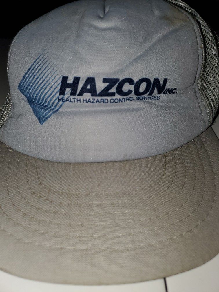Vintage 80s/90s Hazcon Inc. Graphic Trucker Hat Health Hazard Control Services