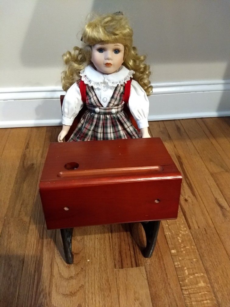 Vintage Doll-school Girl W Desk