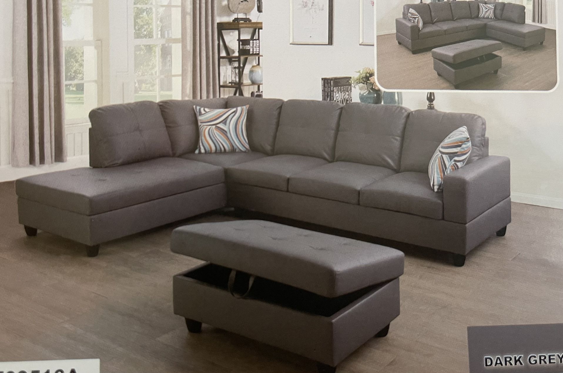 Brand new still in packaging with decorative pillows and storage ottoman included this is display picture Delivery to all areas