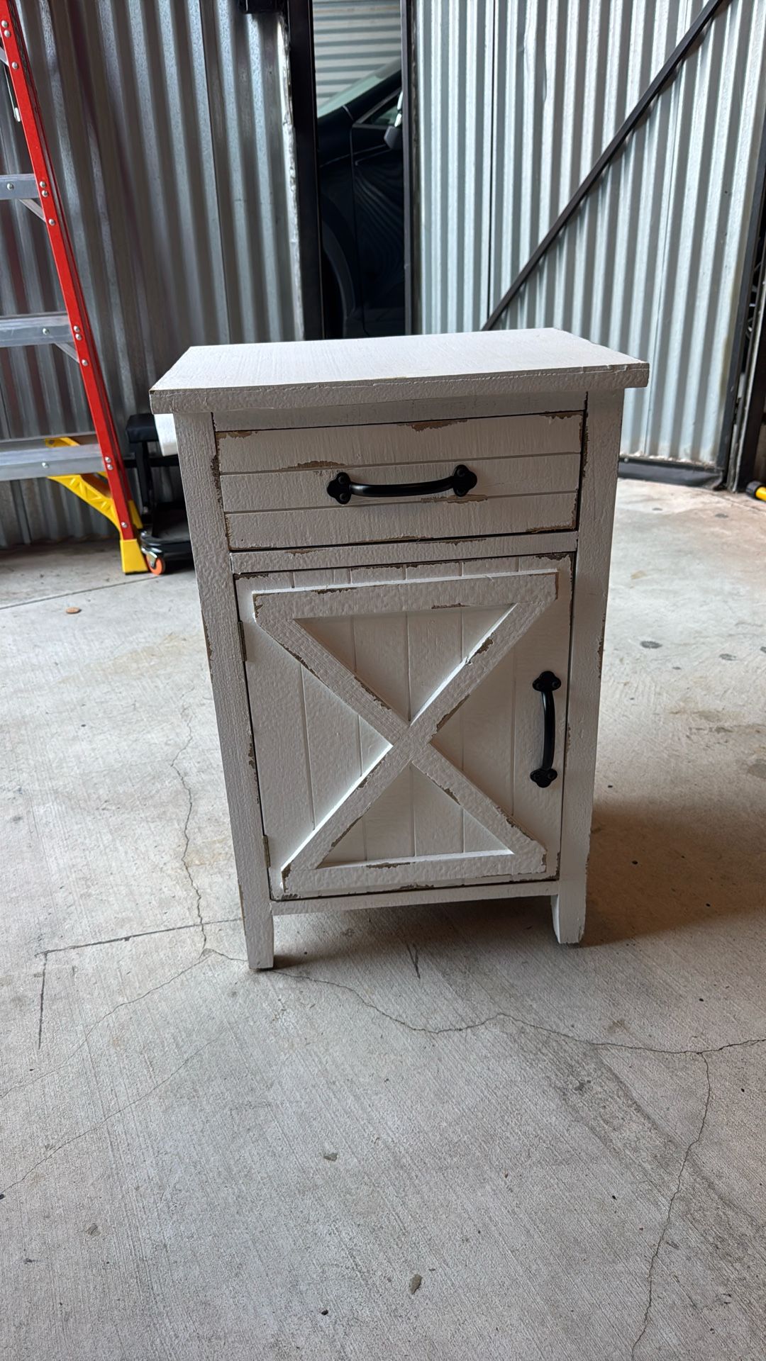 White bedside tables. Both have drawers. Have two. Good conditions. Nightstand