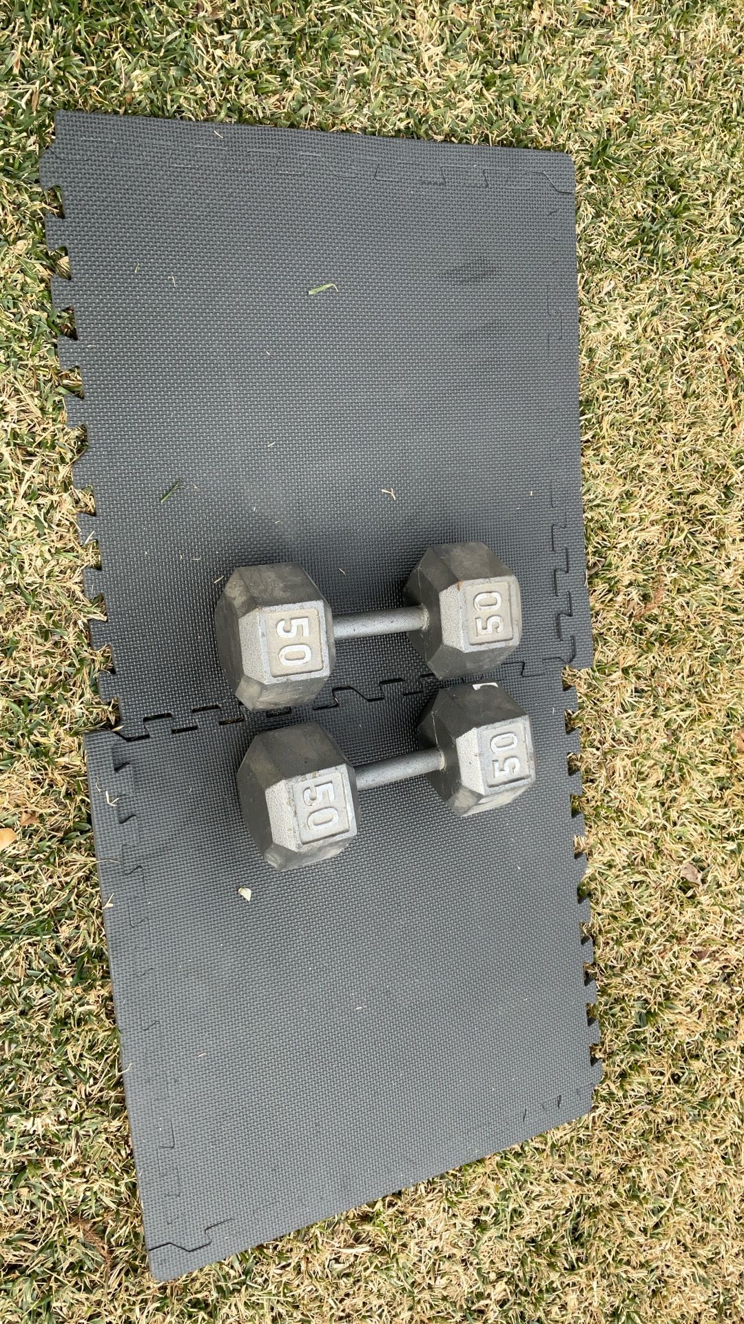 50LB PAIR DUMBBELLS $100 FIRM NO ZELLE NO CASH APP NO DELIVERY NO HOLDS CASH ONLY ALL SALES ARE FINAL PICK UP LOCATION 2814 S. WALTON WALKER BLVD DALLAS