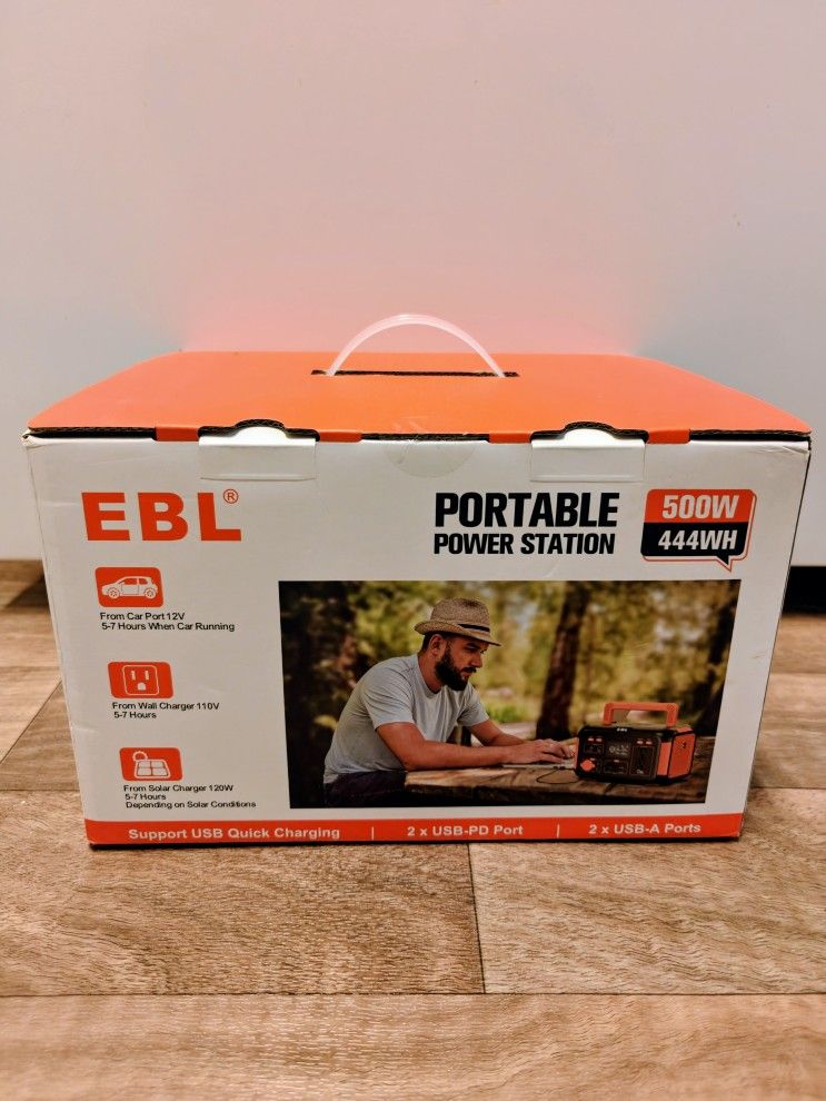 Brand New, in original Packaging. Retails for $399+ Tax. Priced to sell Perfect for Camping or Emergency What's in the box 1× EBL 500W Portable Power Station 1× AC 100-240V Wall Plug Power Adapter 1× MC4-7909 Connector Cable 1× 12V Car Charger Cable 1× User Manual Spec * Ultra-Fast Charging, 9 Device simultaneously * 2× DC outlets, 1× Car Outlet, 2× 110V AC outlets, 1× USB-C PD Quick 60W port, 1× USB-C PD 20W port, 2× Quick Charge 3.0 ports * Full charge in just 5-7 hours * 3 Ways To Recharge, Built-in MPPT Controller. It can be charged via an AC outlet, a 100W Solar panel, or a car outlet. * Super safe BMS protection * With High-capacity 500W rating, well-equipped to handle a variety of home and outdoor power needs, including electric grills, coffee makers, refrigerators, microwaves, and electric stoves Weight : 9.9 Pounds EBL Portable Power Station 500W, 444Wh Backup Lithium Battery, 500W Solar Generator For Outdoors Camping Travel Home Emergency Use (Solar Panel Optional)