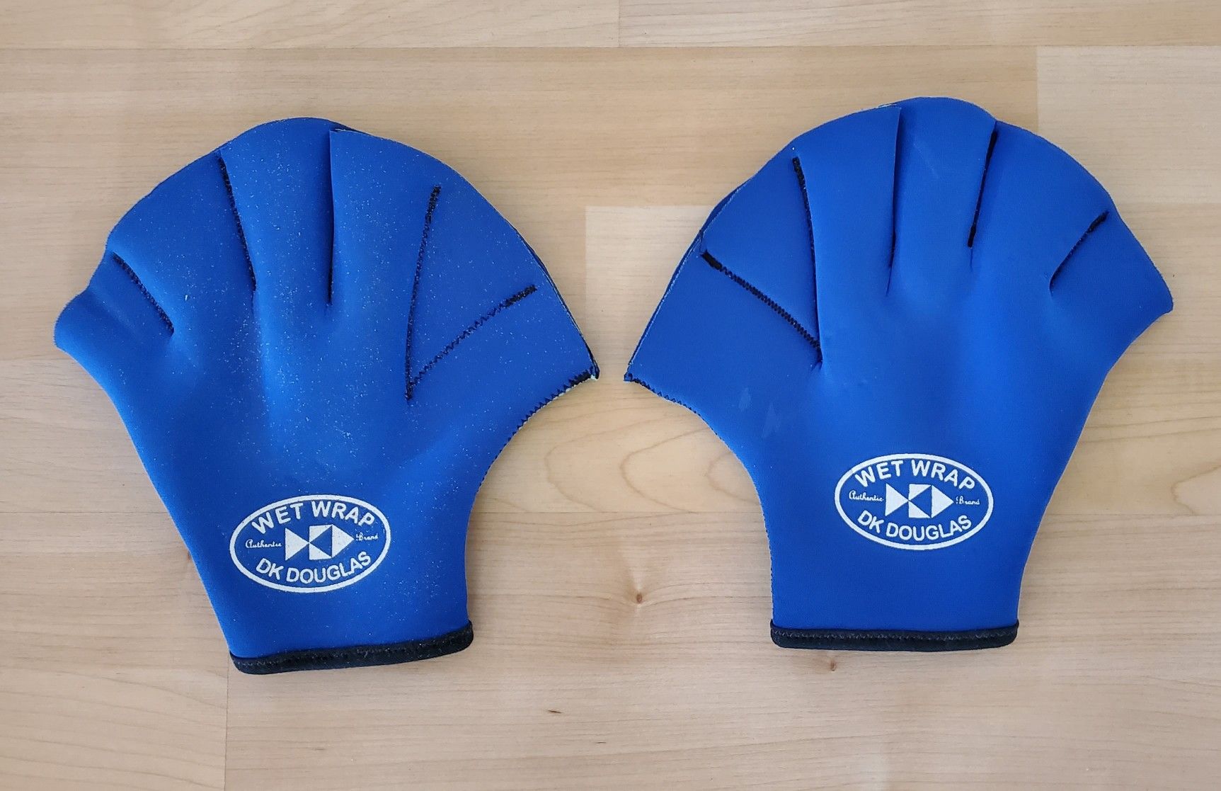 Water exercise gloves have become standard equipment in water exercise programs around the world. Webbed fingers increase aq1hand area creating greater resistance as you push and pull your hands through the water in a variety of creative movements. Gloves allow you to gradually increase the force you apply as your strength increases. Swimmers enjoy the natural feel of gloves compared to uncomfortable plastic hand paddles, without compromising proper technique. The WaterGlove’s™ unique, “palm conforming design” molds to the natural contours of the hand eliminating the “bubble” that forms in the palm of other gloves. Instructors who have tried many other gloves tell us the WaterGlove™ is the most comfortable and durable of the gloves.