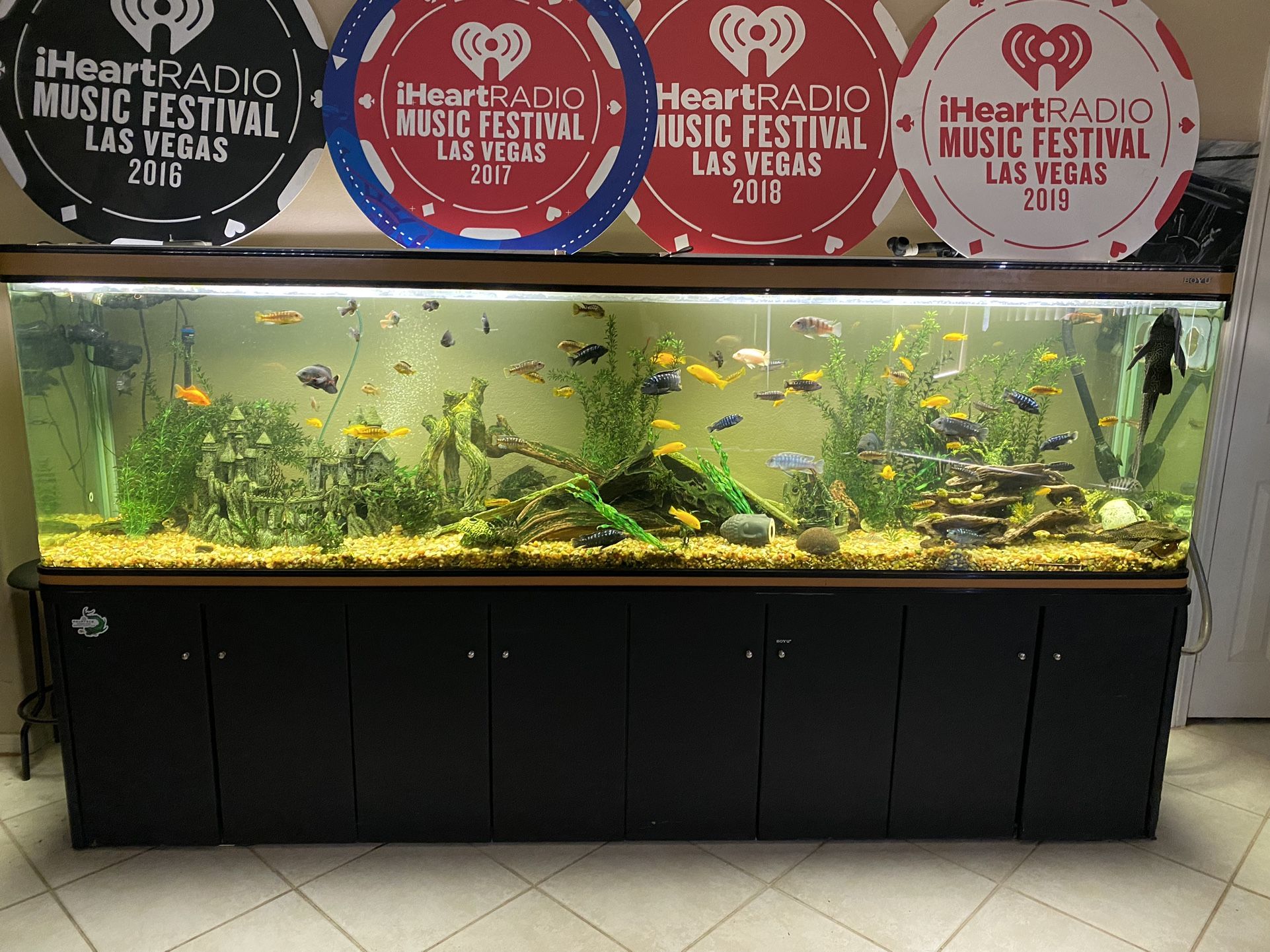 Rocks, fake plants, bark, decorations etc, as for questions Tank not for sale Just selling everything inside it for salt water conversion