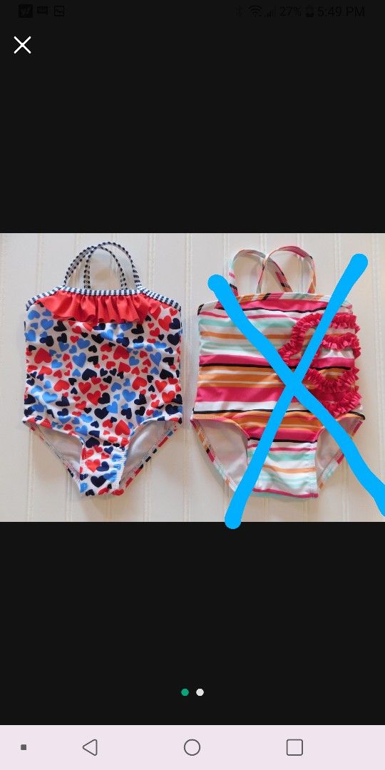 Adorable new without tags girl size 6-9 months 1pc swim suit. The red white and blue hearts one would be cute for Fourth of July! (STRIPED ONE SOLD). Pool or beach perfect! ►Firm $10 - swim clothes clothing swimming pool water 1pc