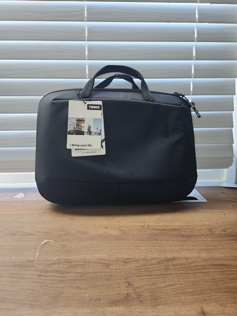 Thule Subterra MacBook attaché 14", Black Padded, soft-lined laptop sleeve fits a 14'' PC/MacBook and padded tablet sleeve protects 10.9'' tablet Soft-lined pocket provides protection for valuables Pockets inside the attaché allow for organization of pens, cords, and other small items while key lash fob provides easy access to keys Back panel security pocket keeps vital items like passport or wallet hidden yet close at hand Use easy adjust feature to quickly change shoulder strap length to fit to your needs