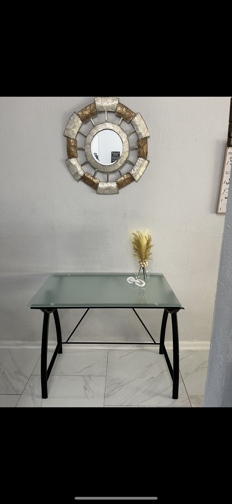 Decorative glass top desk H 30 inches L 37 inches W 24 inches
