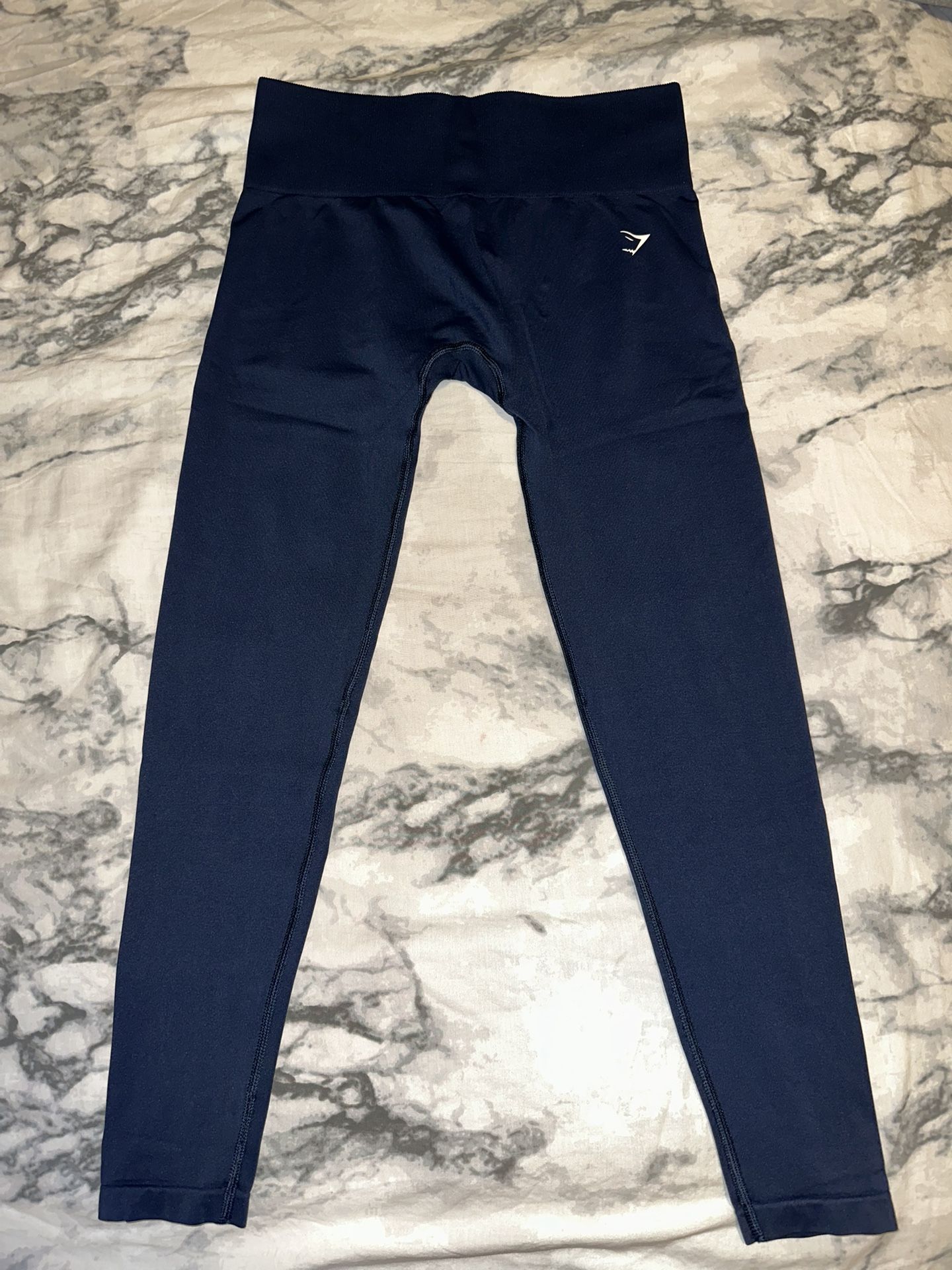 - women’s leggings - color: navy - size: medium - worn a couple of times. Still in good condition!
