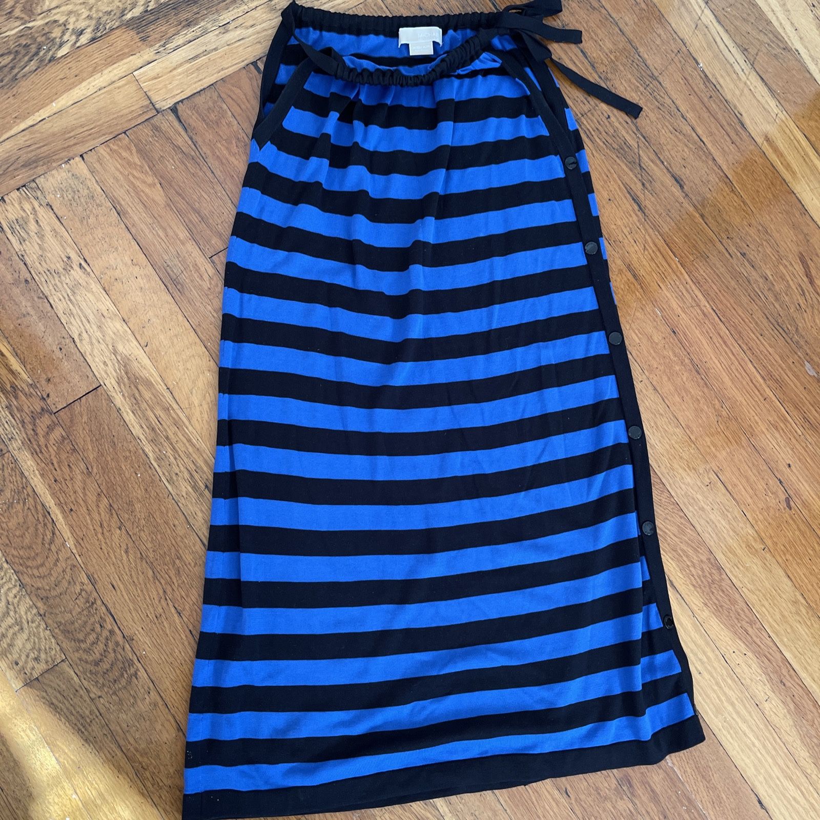 Michael Kors Blue Black Striped MIDI Sleeveless Knit Dress Sz XS