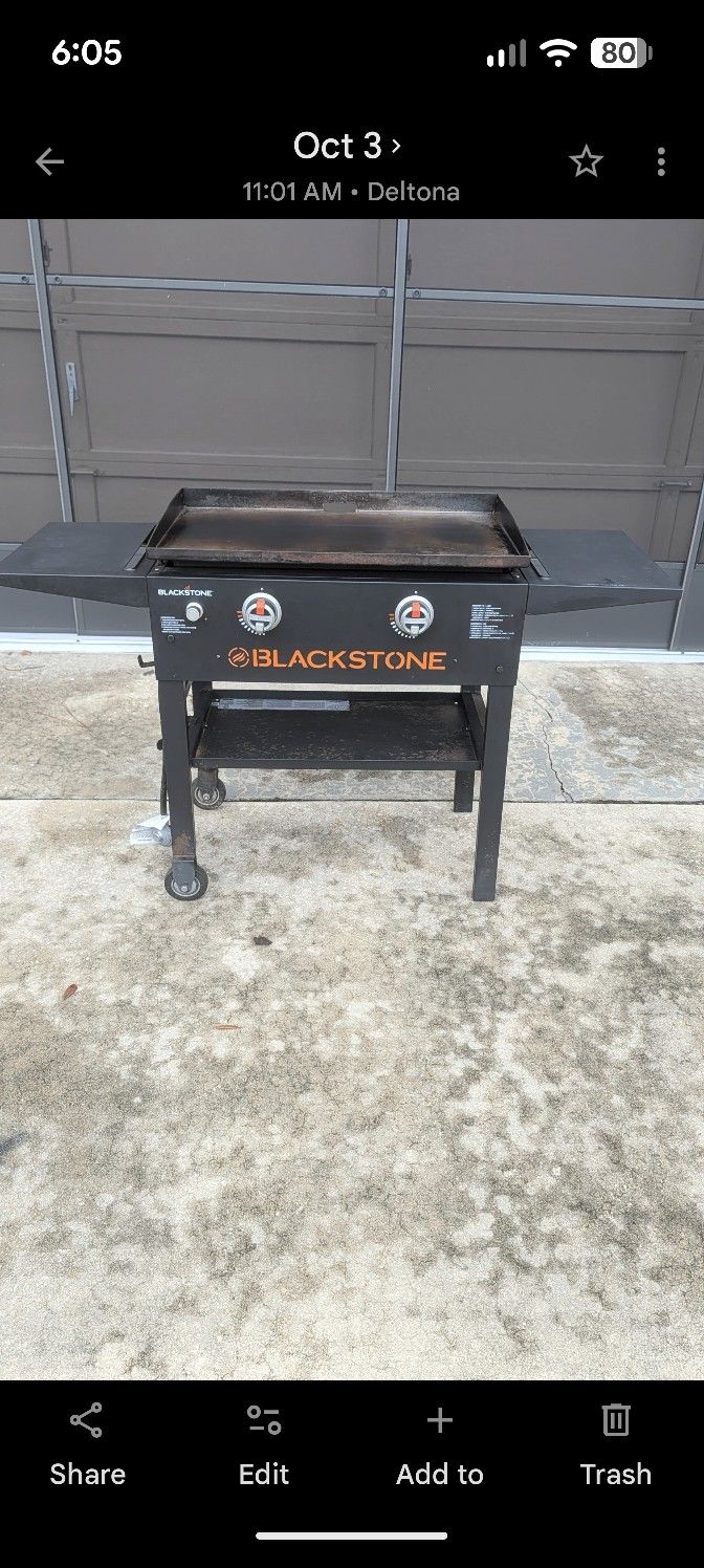 28" refurbished 2 burner Blackstone in perfect working condition. The griddle top has been refurbished and seasoned and is ready for its first use. Price is firm, won't respond to lower offers. Propane tank is not included. Can deliver in the Deltona area for additional $20.