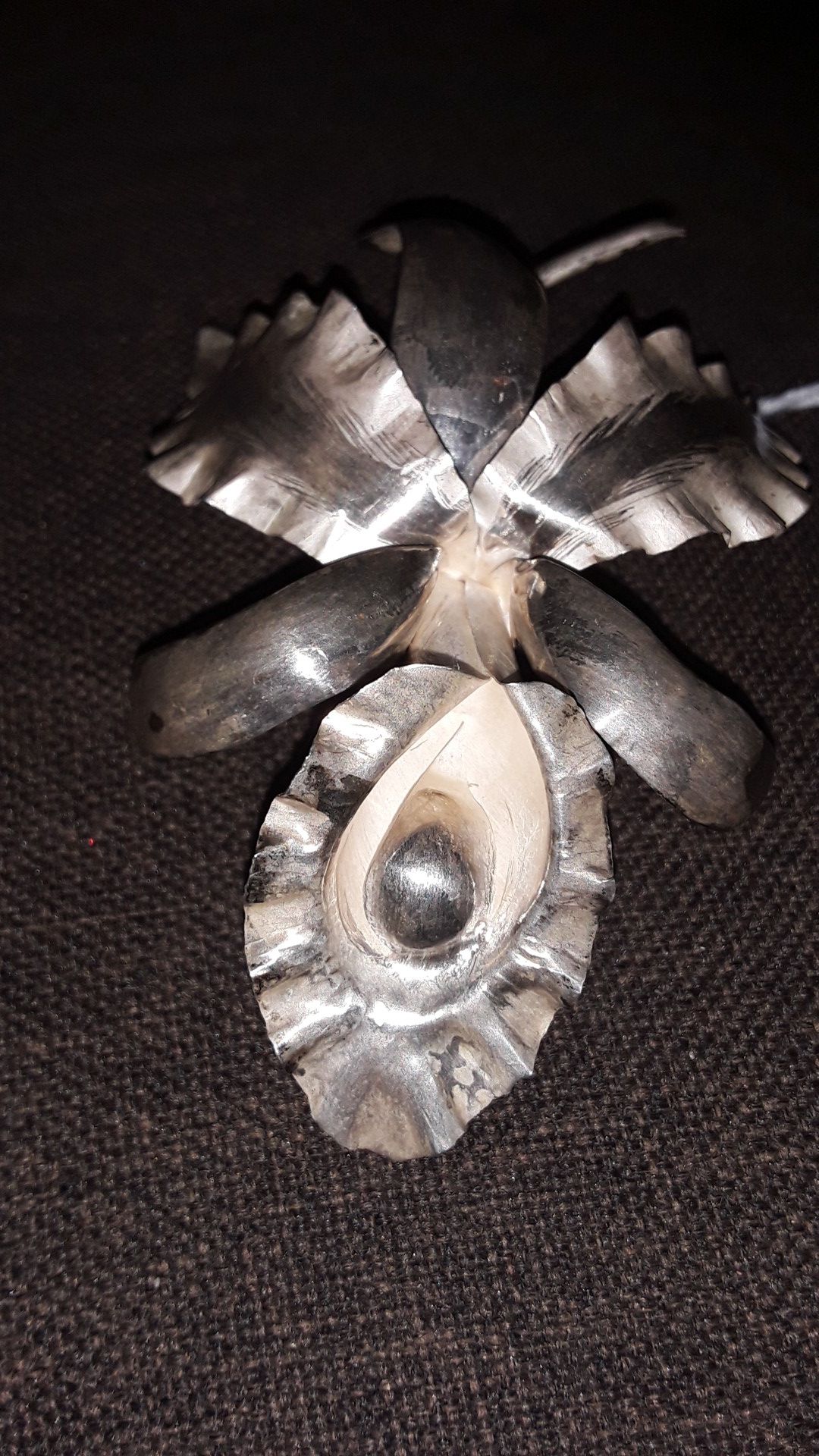 1940's large handmade sterling silver flower brooch. Excellent condition