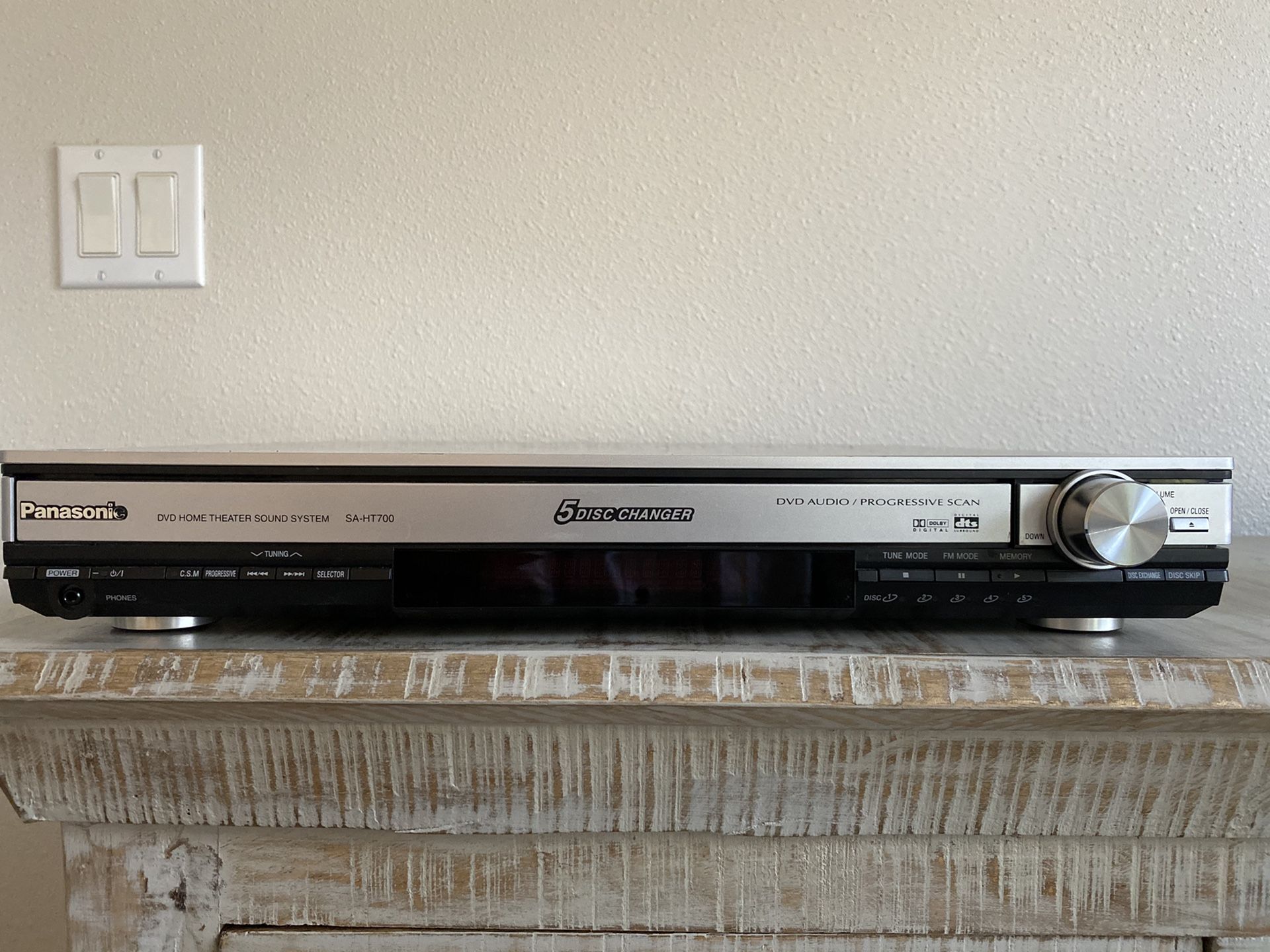 Panasonic DVD Home Theater Sound System Model SA-HT700 5 Disc DVD carousel player 6 speaker surround sound system includes center channel, subwoofer, 2 left channel speakers, 2 right channel speakers. Used but in great condition.