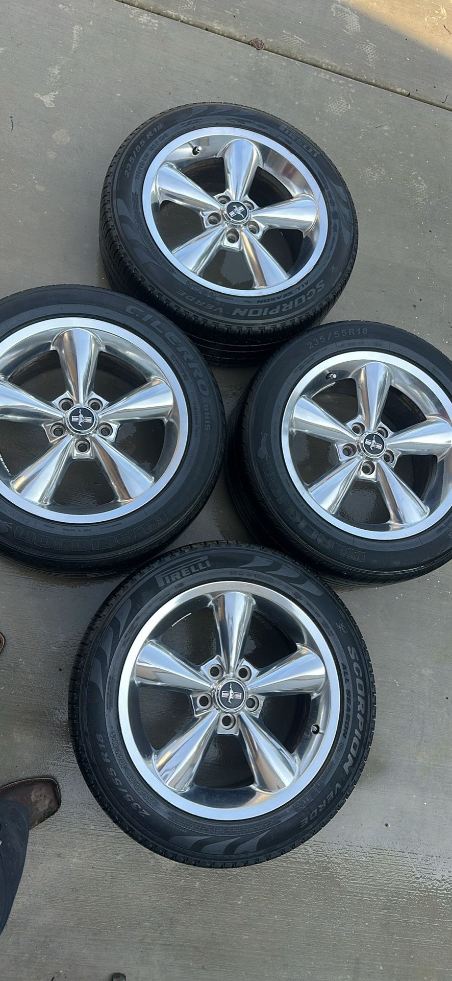 18x8 5x114.3 Whole set (4) Very Clean OEM Mustang Gt Wheels 550$ OBO, Will need tires soon, Triple Chrome/Silver (5 Spoke Aluminum Alloy) Came off a 06 GT, will fit most mustangs or any 5x114.3 wheel pattern car.