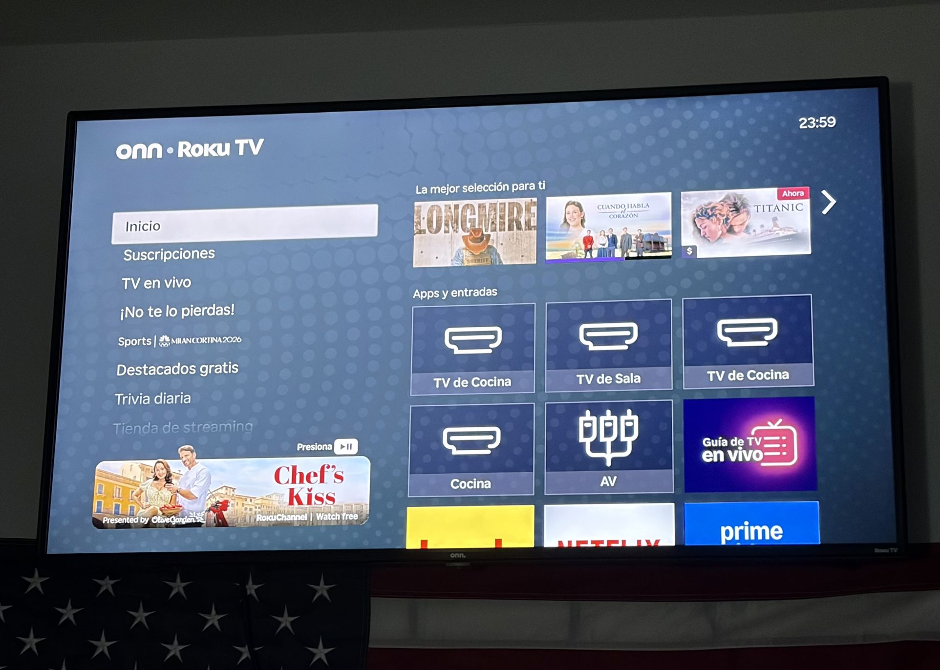 Televisor de 55’ en perfecto estado. Con soporte de pared. Roku TV