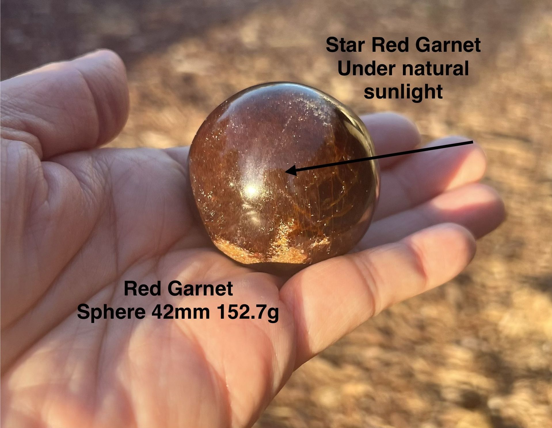 Gorgeous Star Red Garnet Sphere. It’s very hard to capture the star effect (asterism) in pictures. The star effect in most star garnet gemstones is subtle and requires the correct lighting to be seen clearly. The best lighting is direct sunlight. The star is best seen by standing directly above the stone and looking straight down. ❤️Garnet is a good stone for depression, bringing joy and hope to its user, and helps lessen anger, especially toward oneself❤️stimulates the survival instinct, bringing willpower and courage to a situation❤️Garnet will quickly “light a fire” under you, bringing those internalized ideas and feeling you have to the surface to be acted upon and carried out❤️Powerful Garnet can cleanse the chakras of negative energies and re-energize them❤️ Garnet inspires love and passion, devotion and loyalty❤️