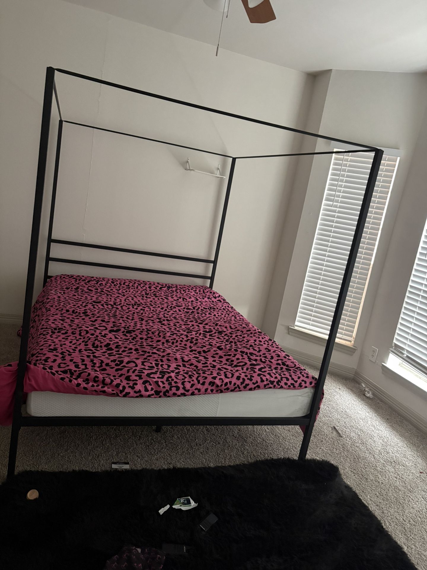 Mattress used maybe a total of 3x in guest room brand new bed frame comes with sheer drapes that go around the bed frame