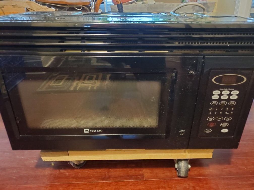 Maytag working over the range microwave oven. Included all mounting hardware. Color: Black. Will need a replacement handle that can be ordered online for $15. Other than that a good clean will bring it to life. If the post is up, the item is still available.