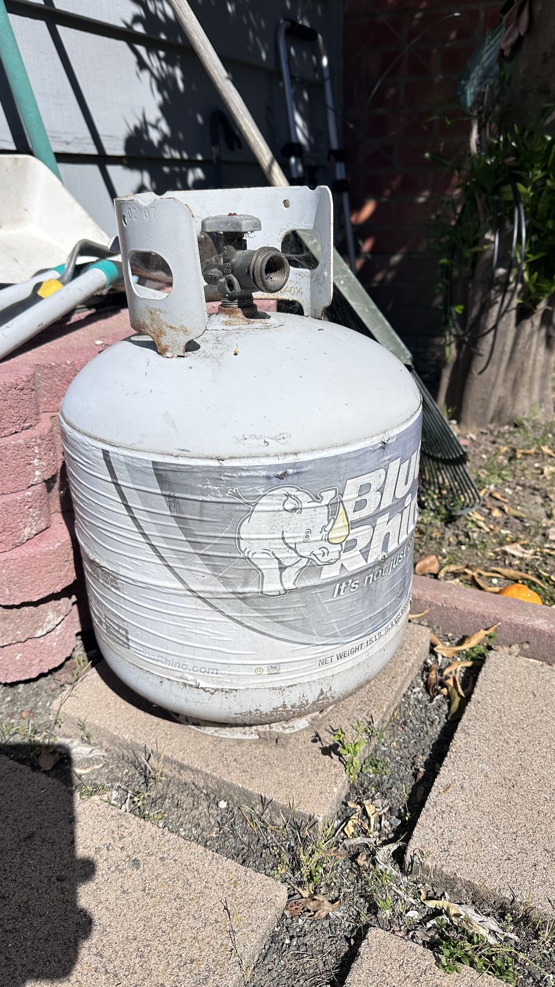 Blue Rhino Propane Gas Tank Not full of tank Probably less than half tank