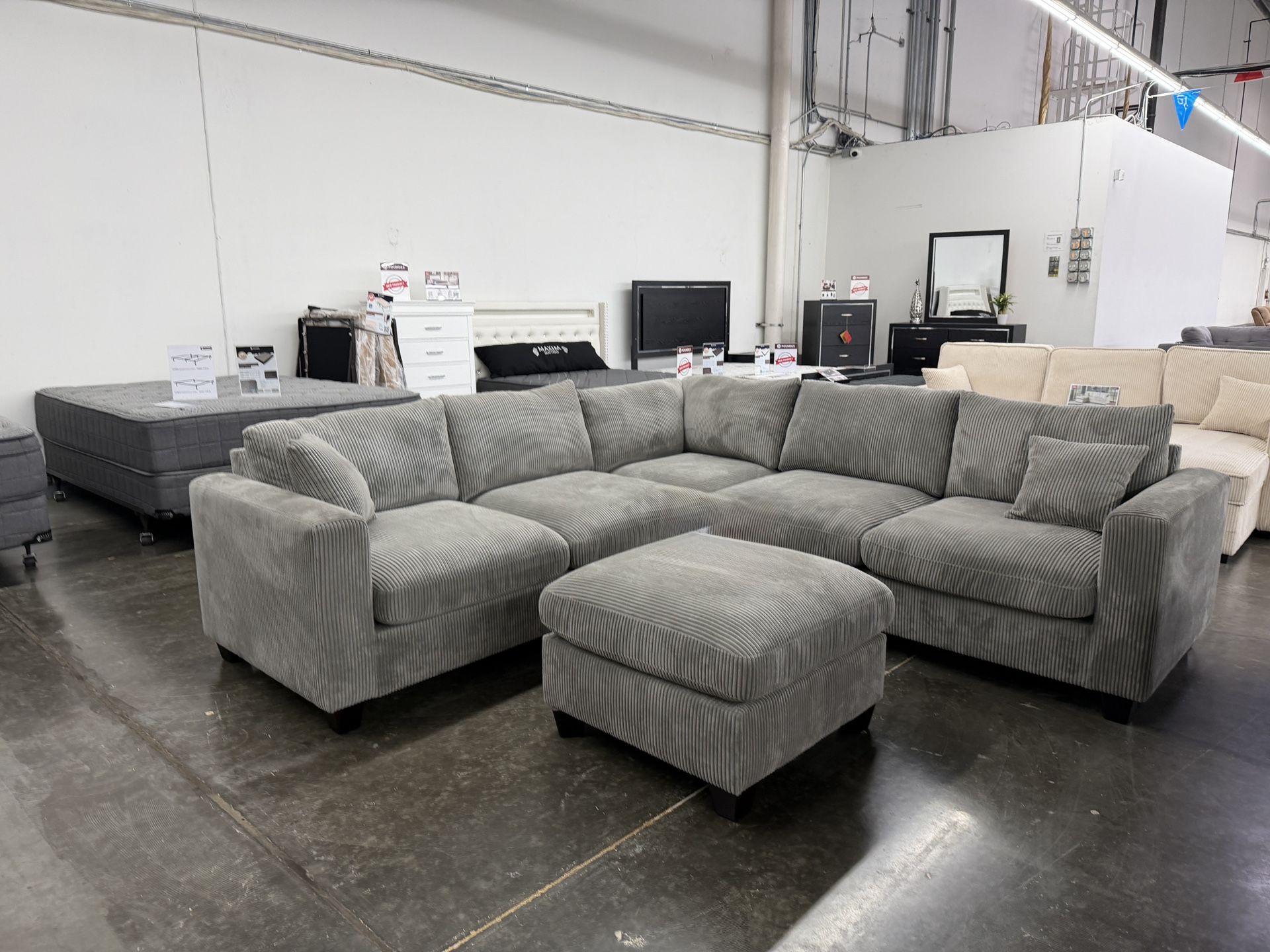 ποΈ Brand New Sectional Sofa with Ottoman β New In Box Modern corduroy sectional sofa with matching ottoman. Comfortable, stylish, and perfect for any living room. βοΈπ¦ Brand new β in box βοΈποΈ Includes sectional + ottoman βοΈππ οΈ Delivery & assembly available
