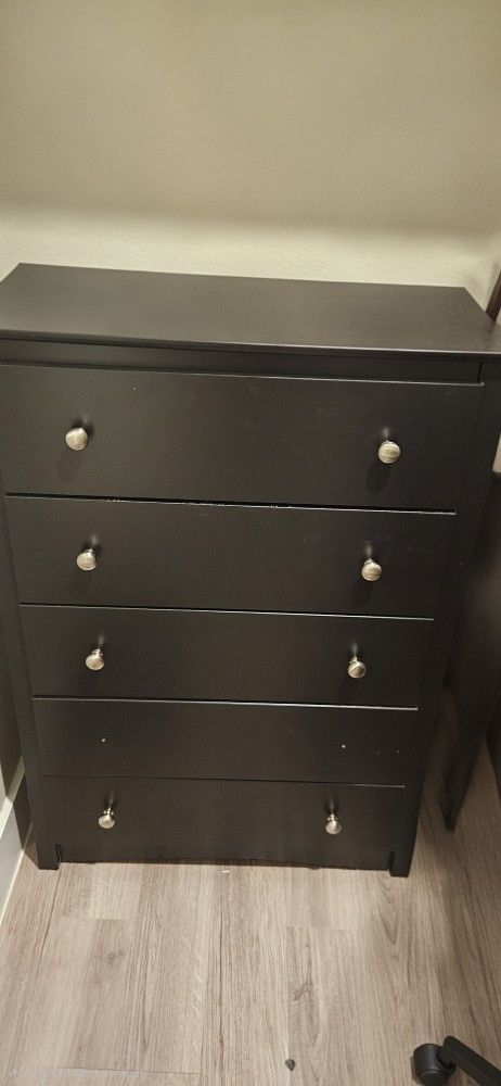 Only minorly used and have had it for just a short period with small scratches at the bottom during a move. Just needs the the knobs for the last drawer screwed in