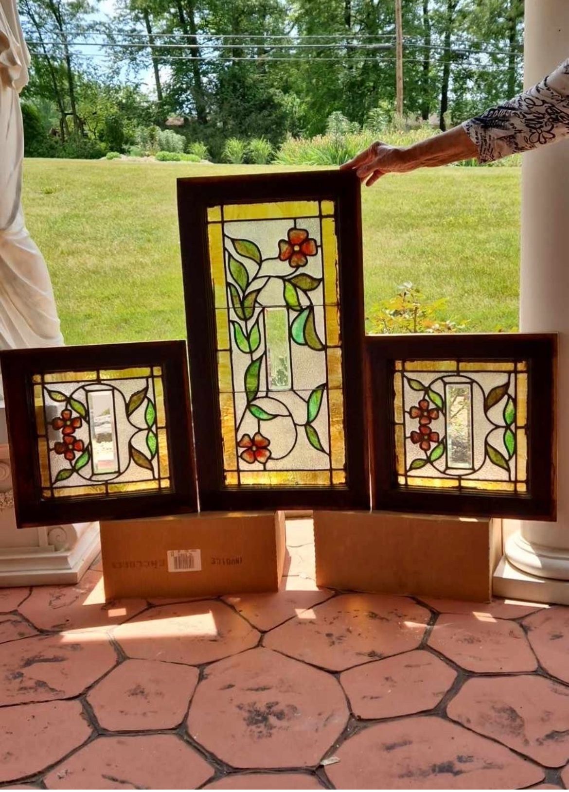 Antique Stained Glass Set (3) 30x16 & 16X16