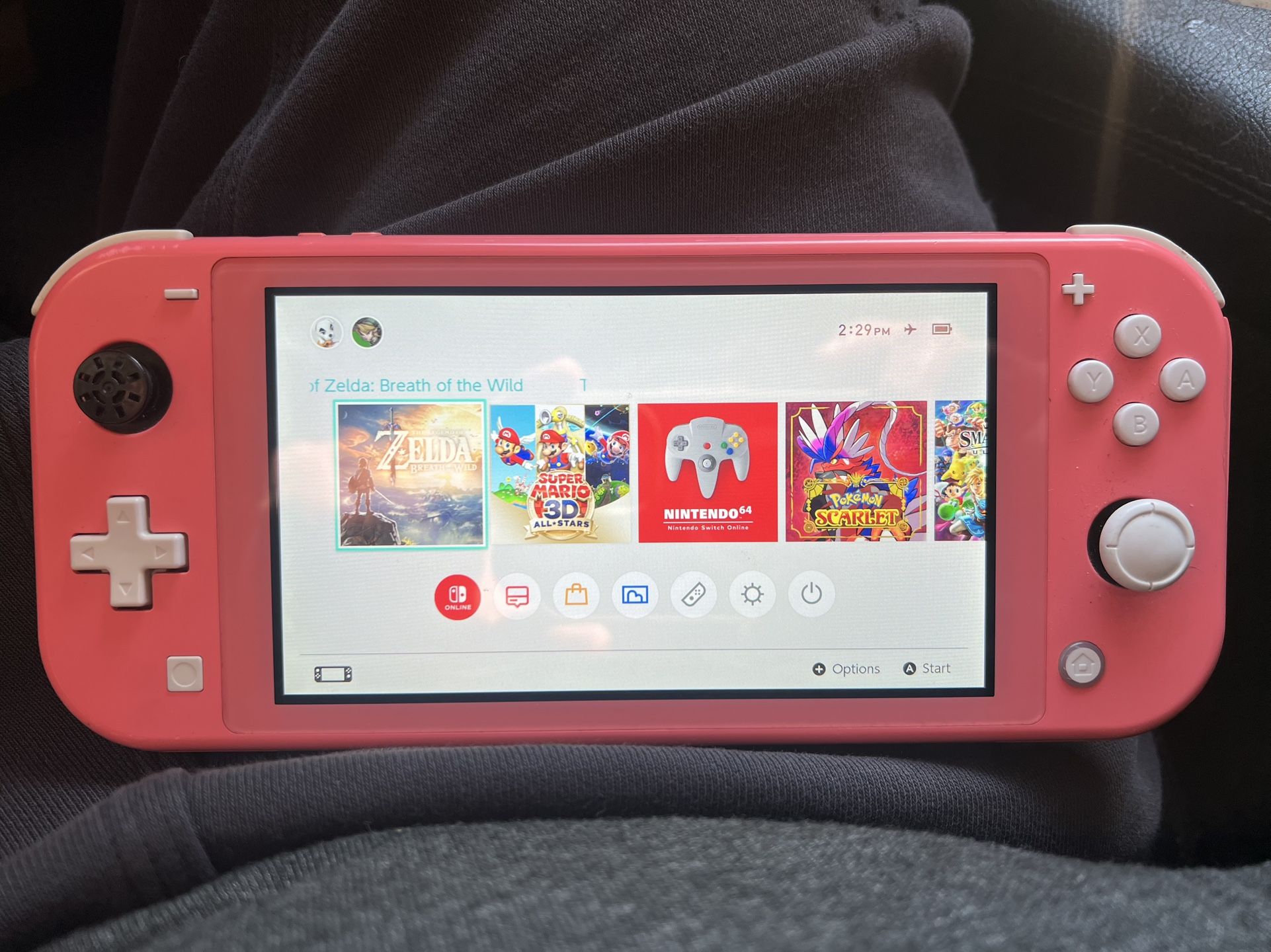 Modded Nintendo switch lite comes with games installed It’s running on tinfoil Comes with Mario odyssey Breath of the wild and tears of the kingdom Emulator to play Nintendo 64 game boy advance and Super Nintendo games Also comes with charger I don’t have box anymore Does have a small crack on the side that’s all Missing plastic on left analog stick Box not included