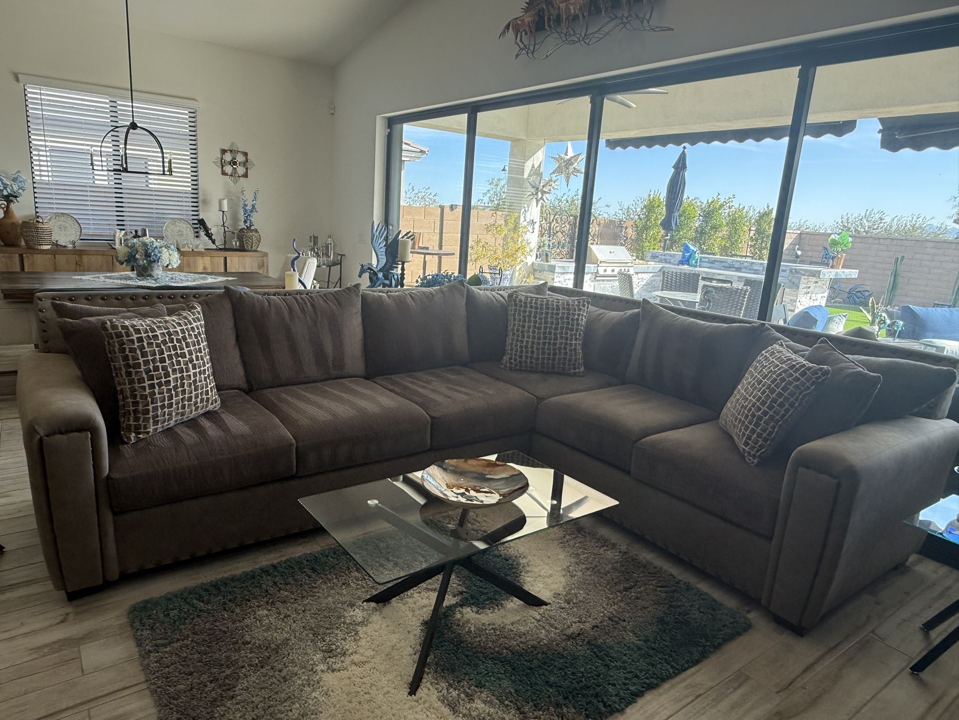 2 piece sectional only 5 years old! In a house with 2 adults, so it’s in excellent condition! Corner piece is 9’ long x 48” deep and the other is 7’ long x 48” deep. The back is 38” tall. Together they make an 11’ x 9’ L-shape. Both pieces have 3 cushions, as well as back cushions. 6 accent pillows included. Pick-up only. $1200 OBO Cash only. Make me an offer!