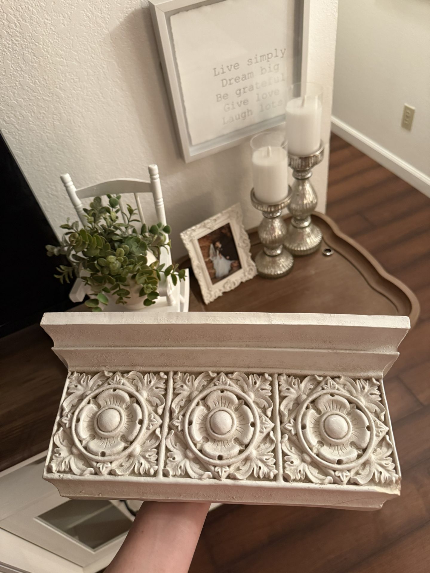 It has a small chip in the corner as seen in picture but it’s not very noticeable
