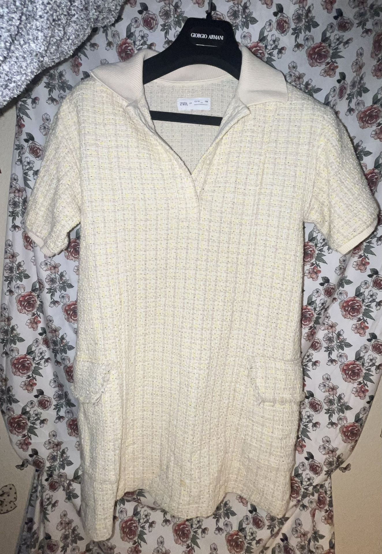 Cream Tweed Mini Dress (Zara, Size 13-14 / 164)