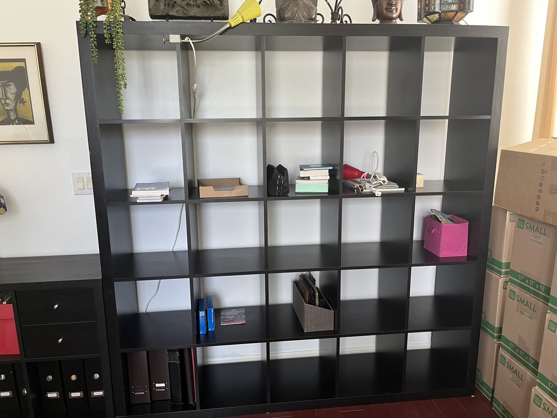 This is a large bookcase. It is 6ft by 6ft. You must bring a truck or a U-Haul and someone to help you move it.