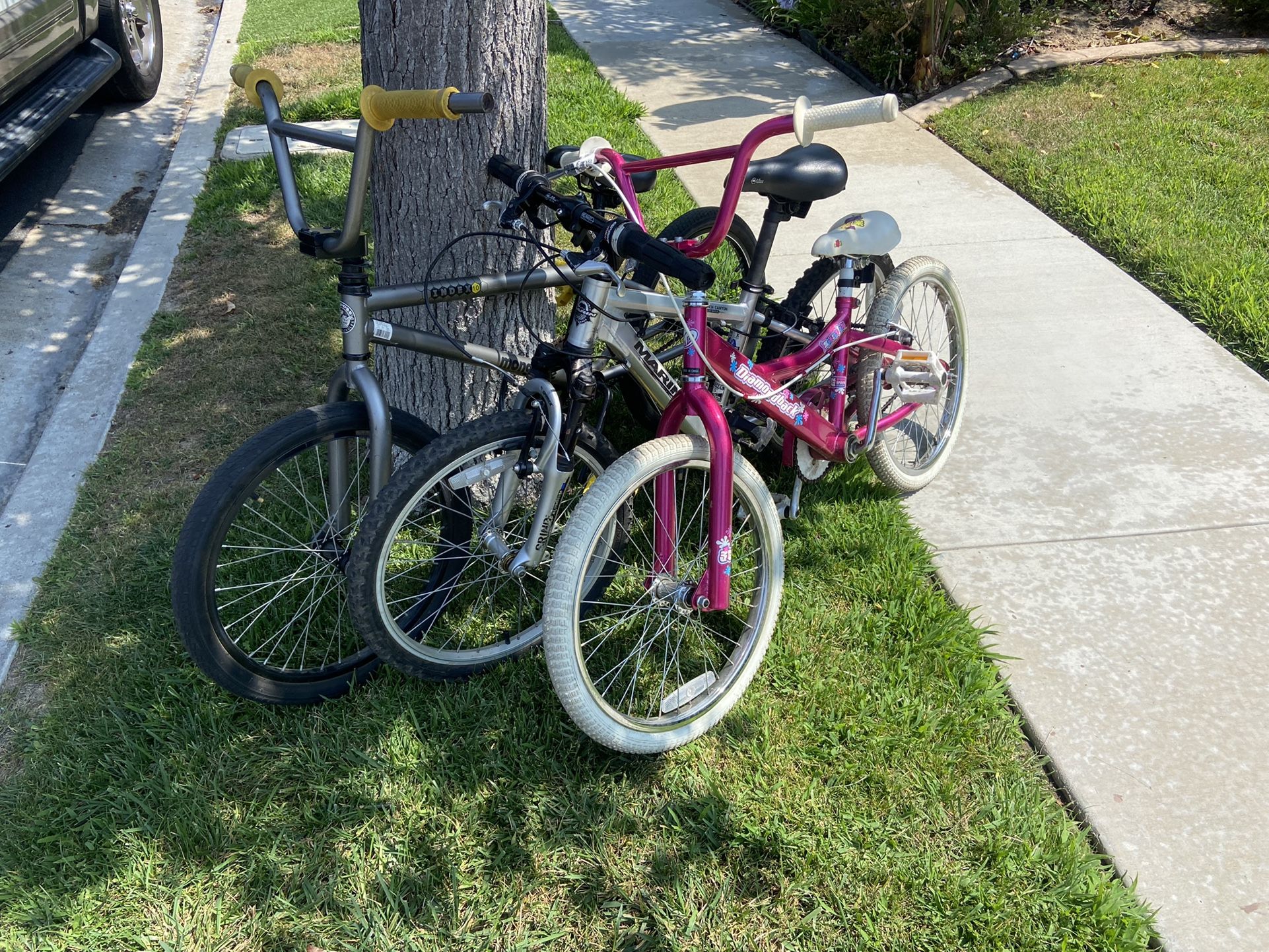 3 great bikes for younger kids and children. One BMX mongoose for the young shredders, one pink bike for casual riding, and one 7 gear road bike. Looking to get rid of ASAP!