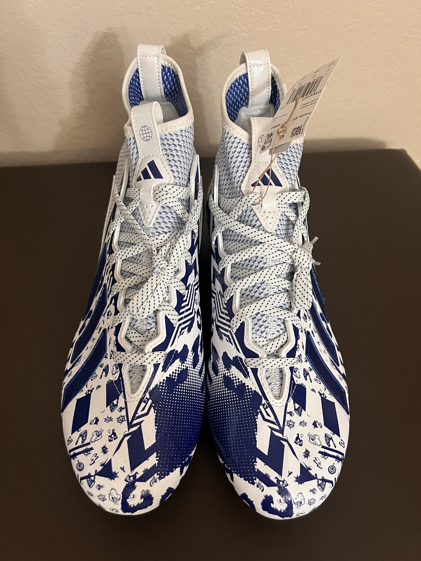 Brand new without the box. Mens size 11.5. White and blue football cleats. Model # GW4167
