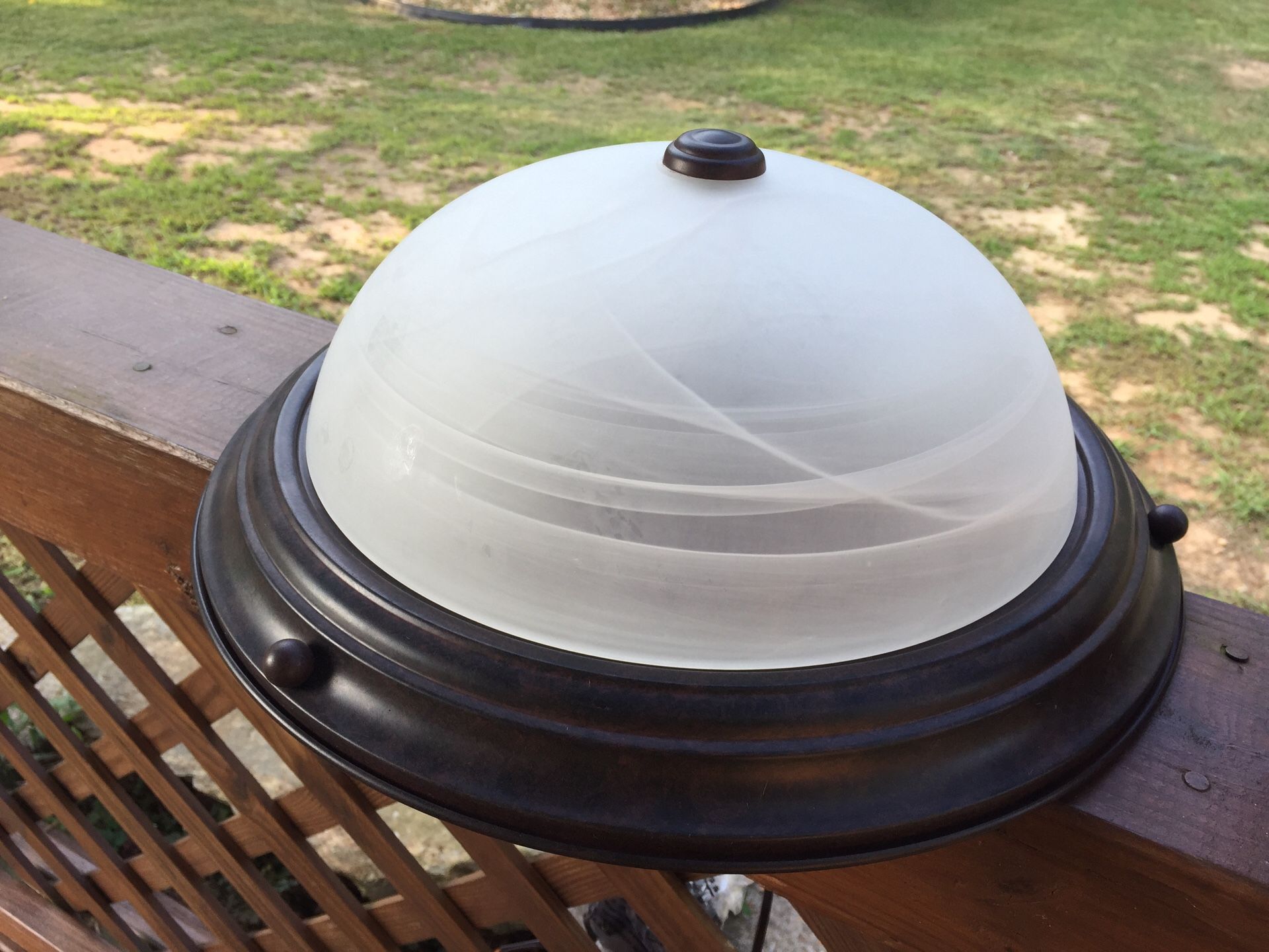 New 3 Light convertible Semi- Flush Dome. Alabaster glass with old bronze dome.