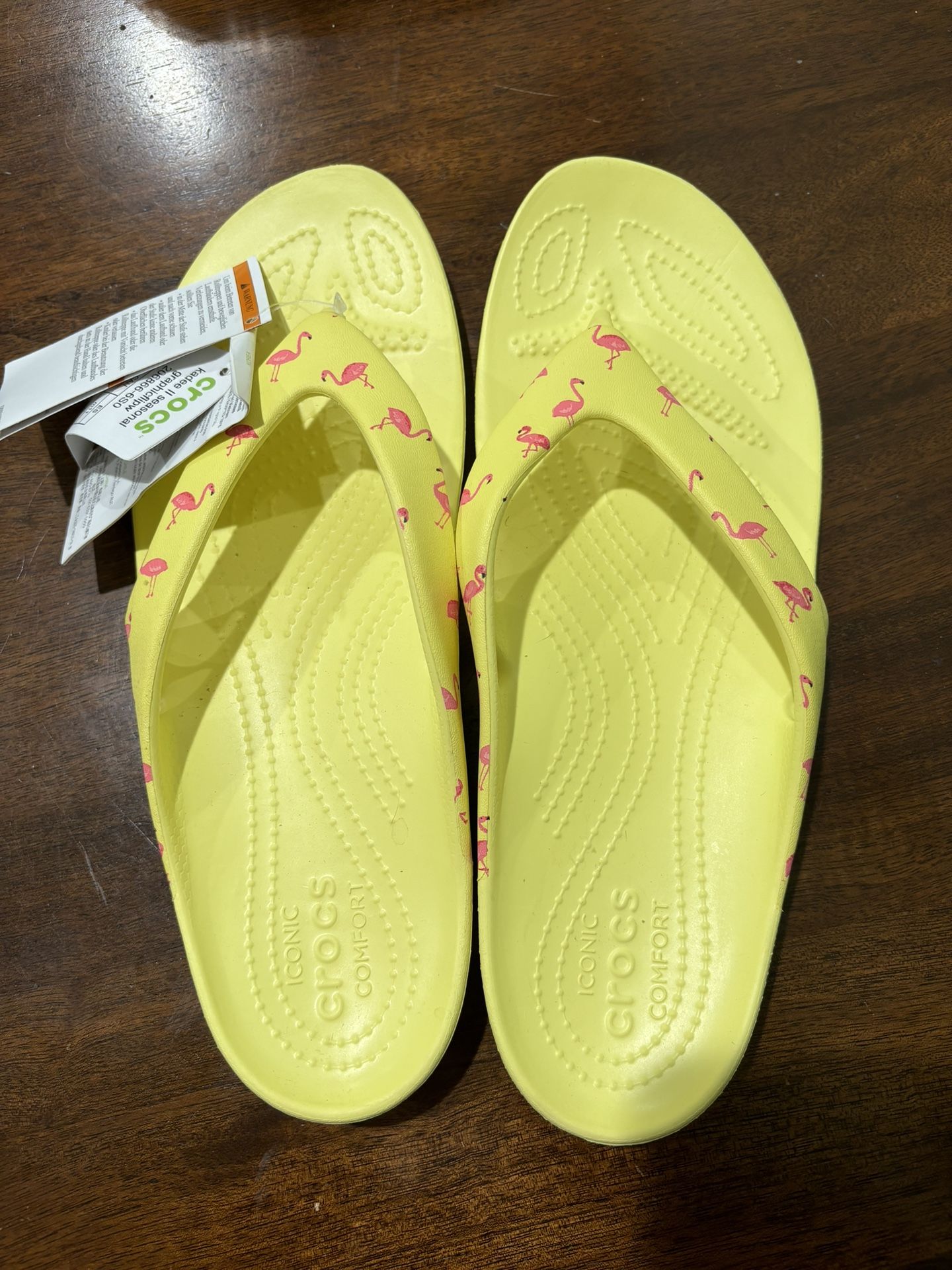 NEW Bright Yellow &Pink Flamingo Crocs, Sz 11