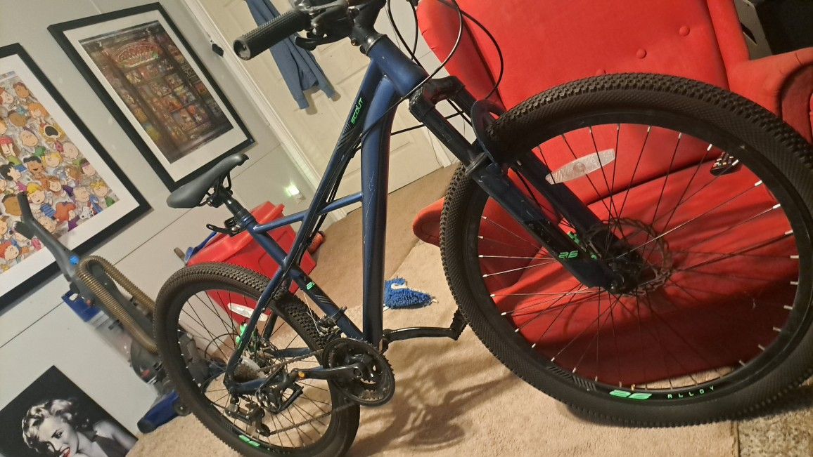 200 dollar bike barely used new tubes ready to go..26 inch Huffy 26-Inch Scout Men's 21-Speed Hardtail Mountain Bike, Denim Blue