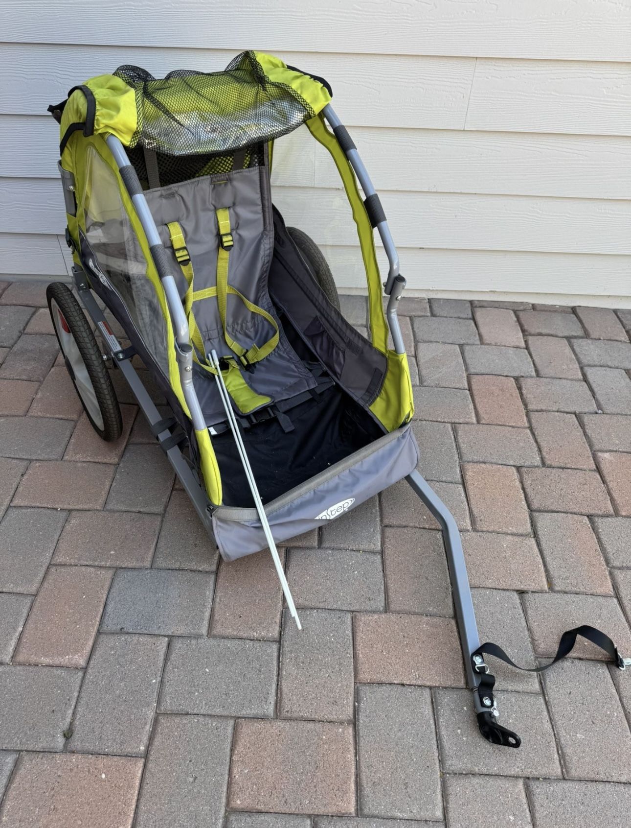 InStep Sync Singleton Bike Trailer - Green & Gray. Pick up only, located in Goodyear near Indian School and Pebble Creek Parkway. Cash payment only, no trades. No holds, fcfs.