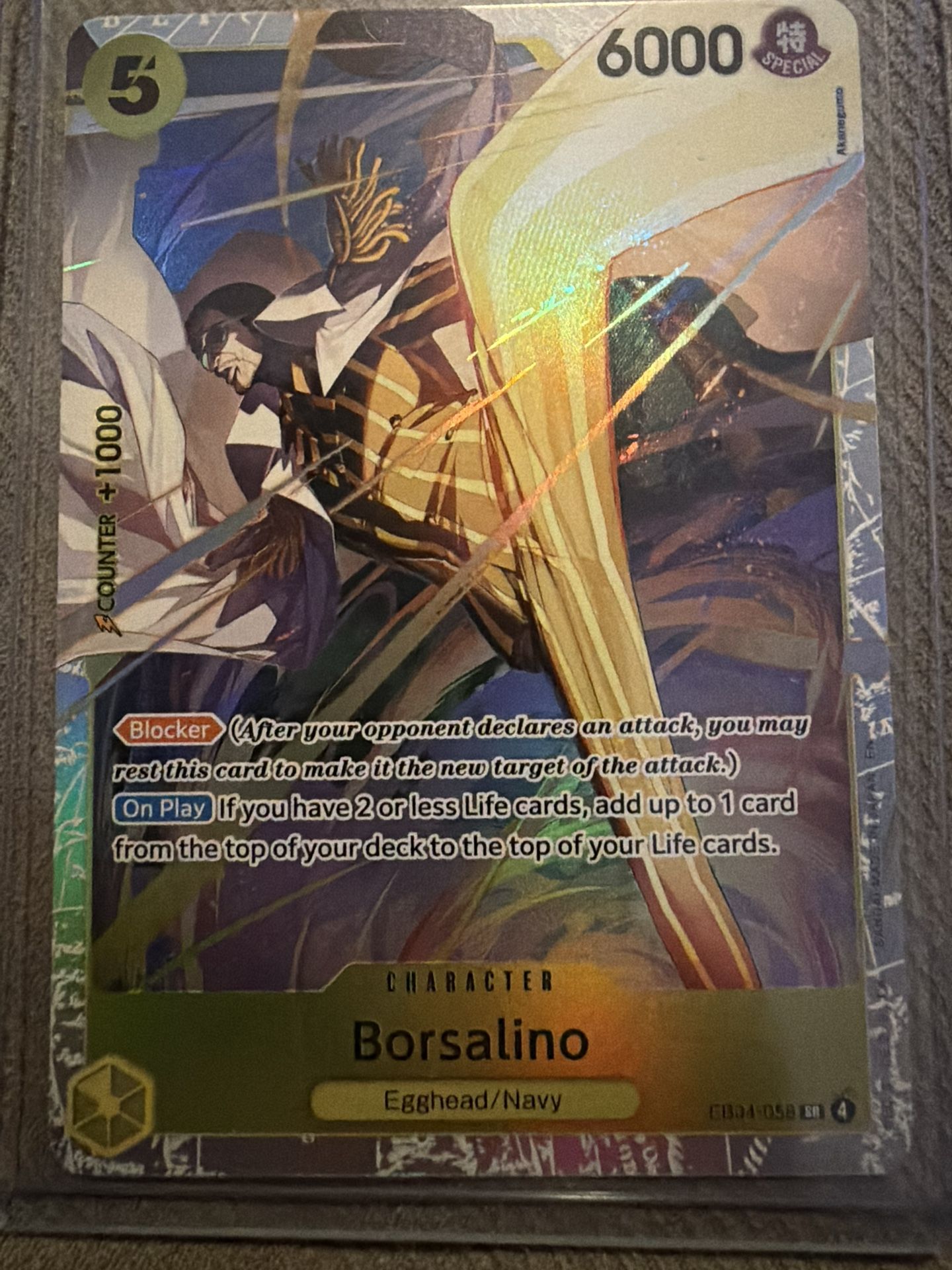 Borsalino - Adventure on Kami's Island (OP15-EB04) Pre-Release Near Mint Holo Foil Opened from Pre-release packs at Core TCG in Pasadena! (2 Available) ***Give your best offer!*** *Price will be based on Current Market Pricing~ Accepting Cash, Venmo, ApplePay, & Zelle Pick up in Pasadena. Happy Shopping and Have a nice day!