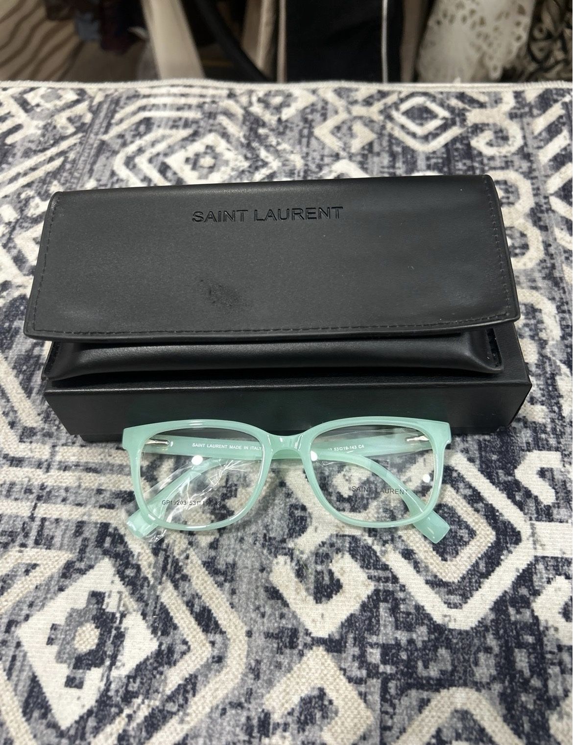 YSL turquoise glasses