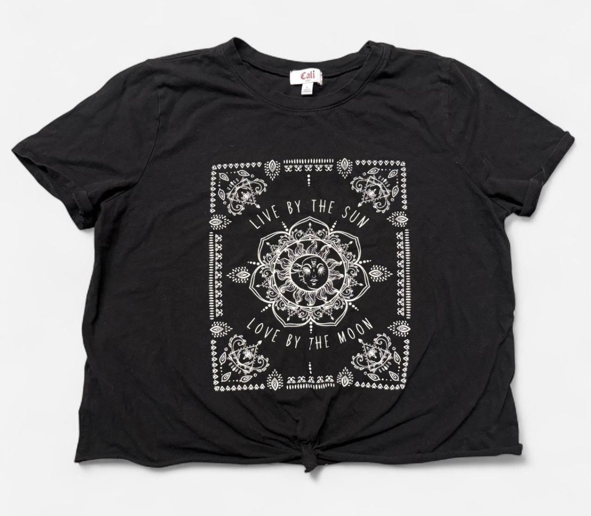 Women's Graphic Tee size L Black Sun & Moon Short Sleeve Crew Neck crop top