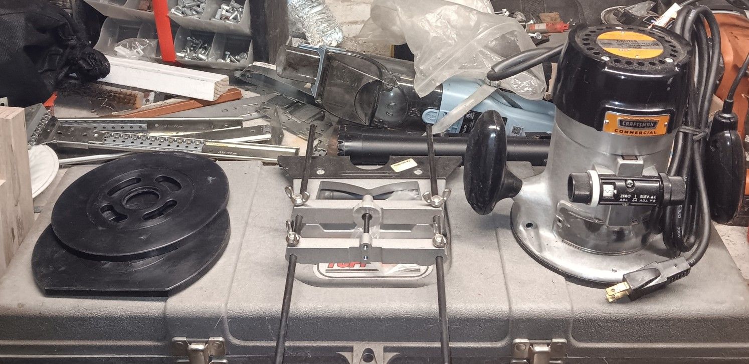 Vintage Craftsman Router Double Insulated 100% Ball Bearing 25000 Rpm W/ Vintage Craftsman Router Edge Guide Micro Adjustable Jig. In a Vintage Contico Grey Tuff 20 " Tool Box. There's Maybe 1 Hour of Use with it, Its like * Brand New.