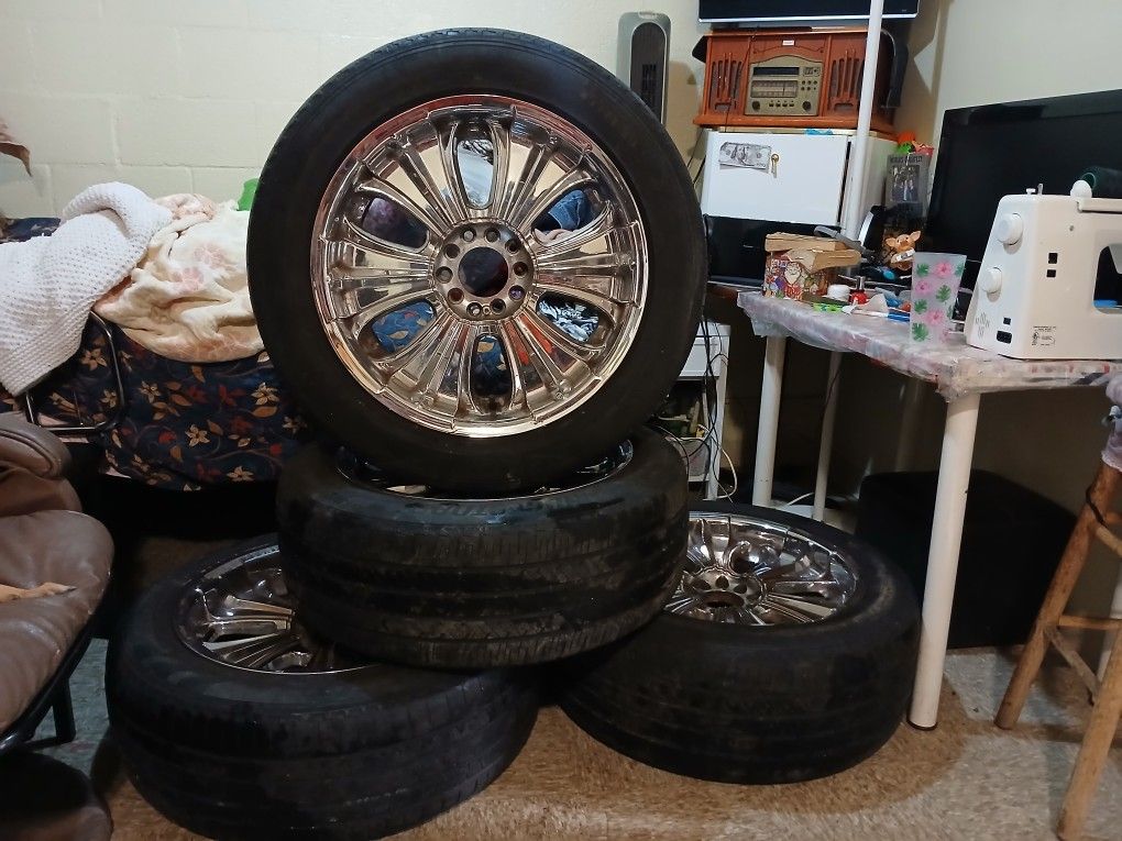 Set of 4 rims with new tires size 255/55R20 10 lugs rims came off Navigator fits Dodge trucks also serious buyers make me a reasonable offer