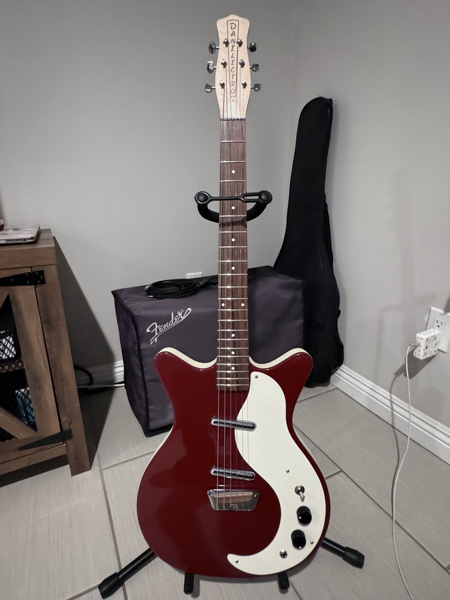 Great guitar. No damage. Danelectros are always fun to play. If you know, you know… Includes Gig Bag & new set of Ernie Ball strings Gauge 10-46. Willing to trade for fishing gear (Penn Reel or Combos)
